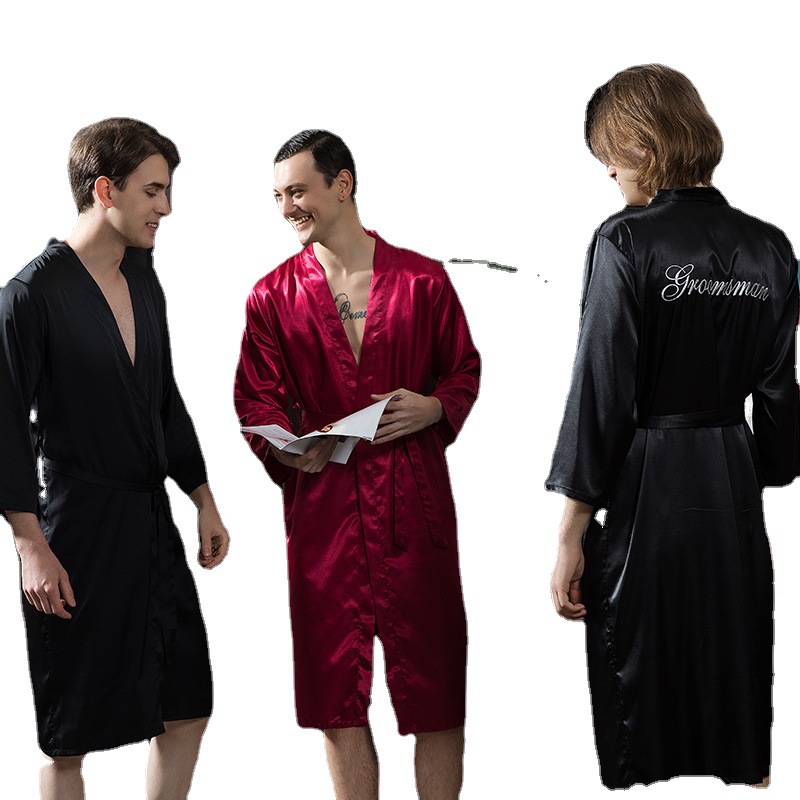 Главная страница > Мужская ночная рубашка, летняя ночная рубашка из искусственного шелка средней длины с принтом, мужская рубашка для жениха, Лучшее Мужское утреннее платье, сексуальная пижама