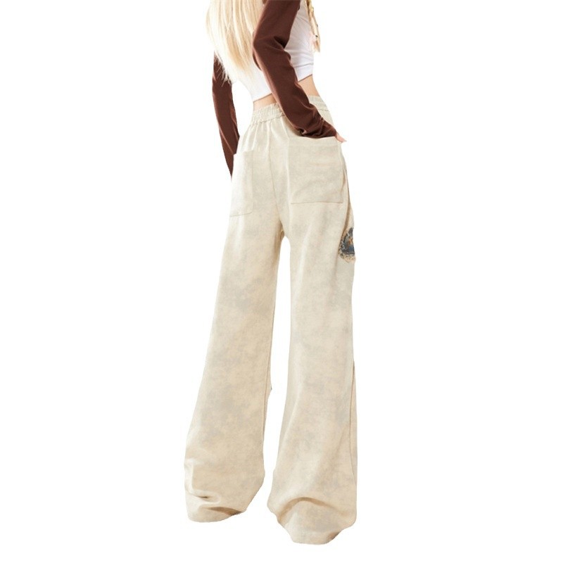 Главная страница > Корейская версия бабочки с вышитыми широкими ногами брюки женские 2024 весна и осень новые тонкие свободные прямые брюки с высокой талией