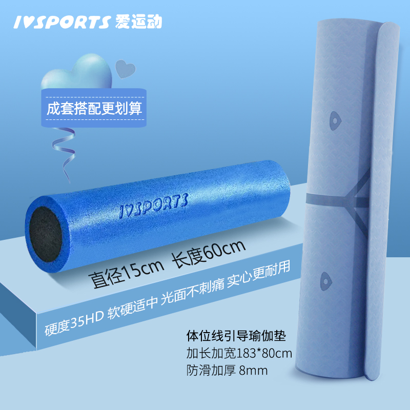Синий и черный двухцветный стандартный диаметр: 15*60 см + 8 мм, синий утолщенный коврик для йоги 183*8