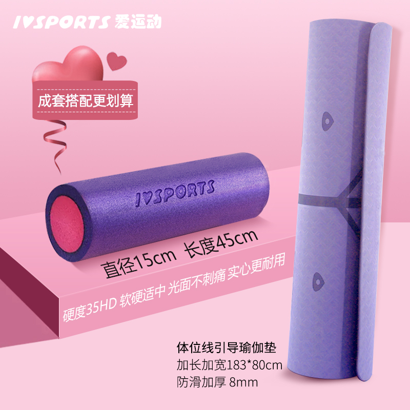 Фиолетовый и розовый двухцветный стандартный диаметр: 15*45 см + 8 мм фиолетовый утолщенный коврик для йоги 183*80c