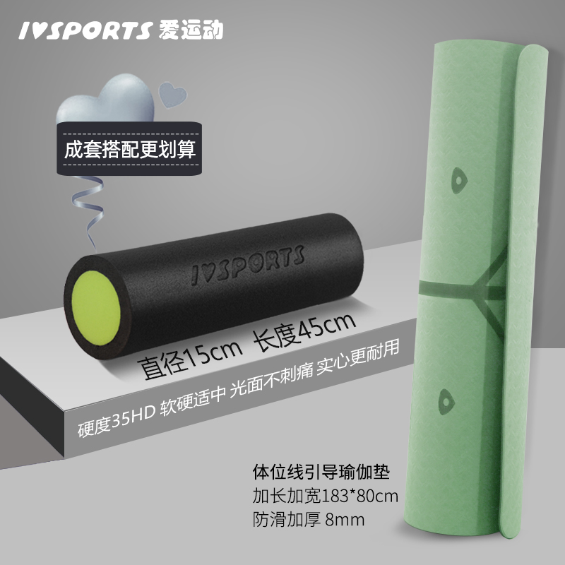 Черный и зеленый двухцветный стандартный диаметр: 15*45 см + 8 мм, утолщенный коврик для йоги матового цвета 183*8