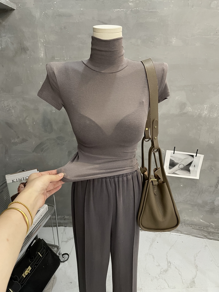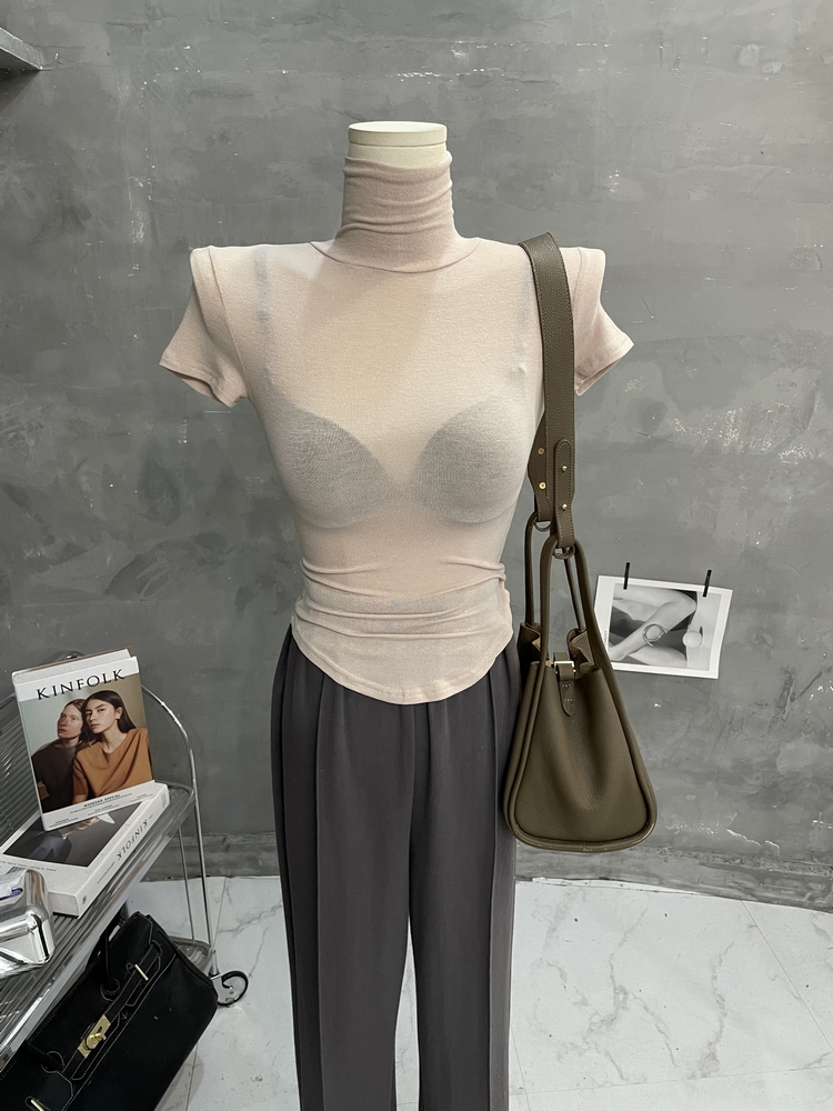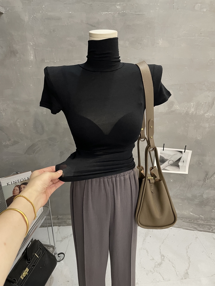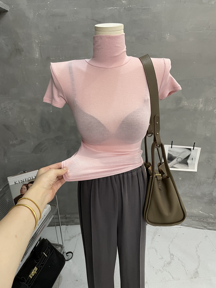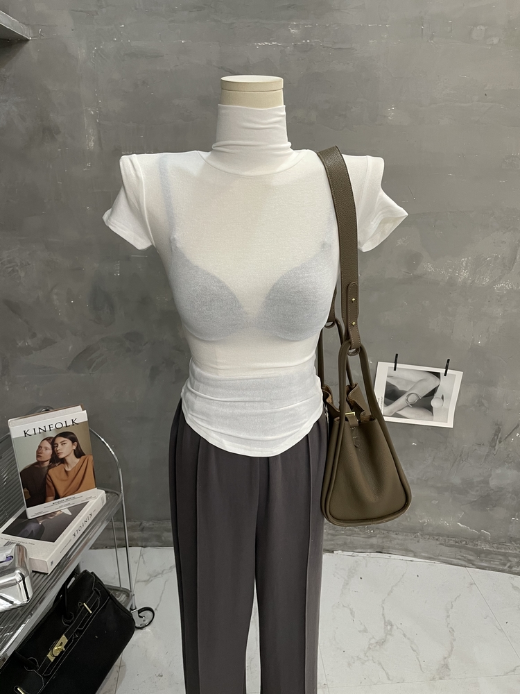 Главная страница > Сексуальный и прозрачный ~ Корейская тонкая рубашка с высоким воротником нижняя рубашка с короткими рукавами