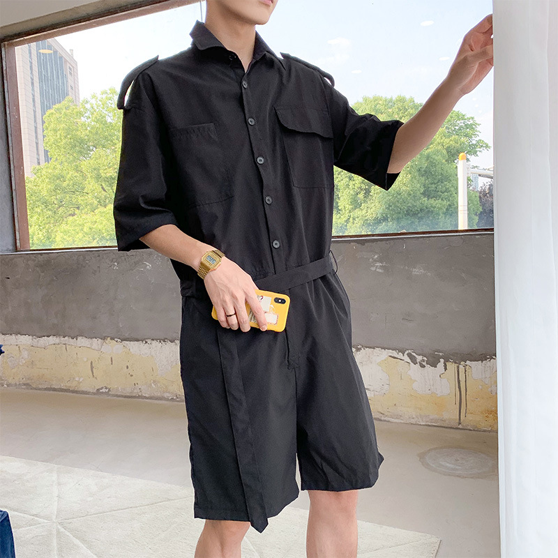 Главная страница > Цельные шорты для спецодежды в японском стиле, модный бренд, Мужской Ретро, Свободный комбинезон с короткими рукавами в гонконгском стиле, брюки на подтяжках, мужские