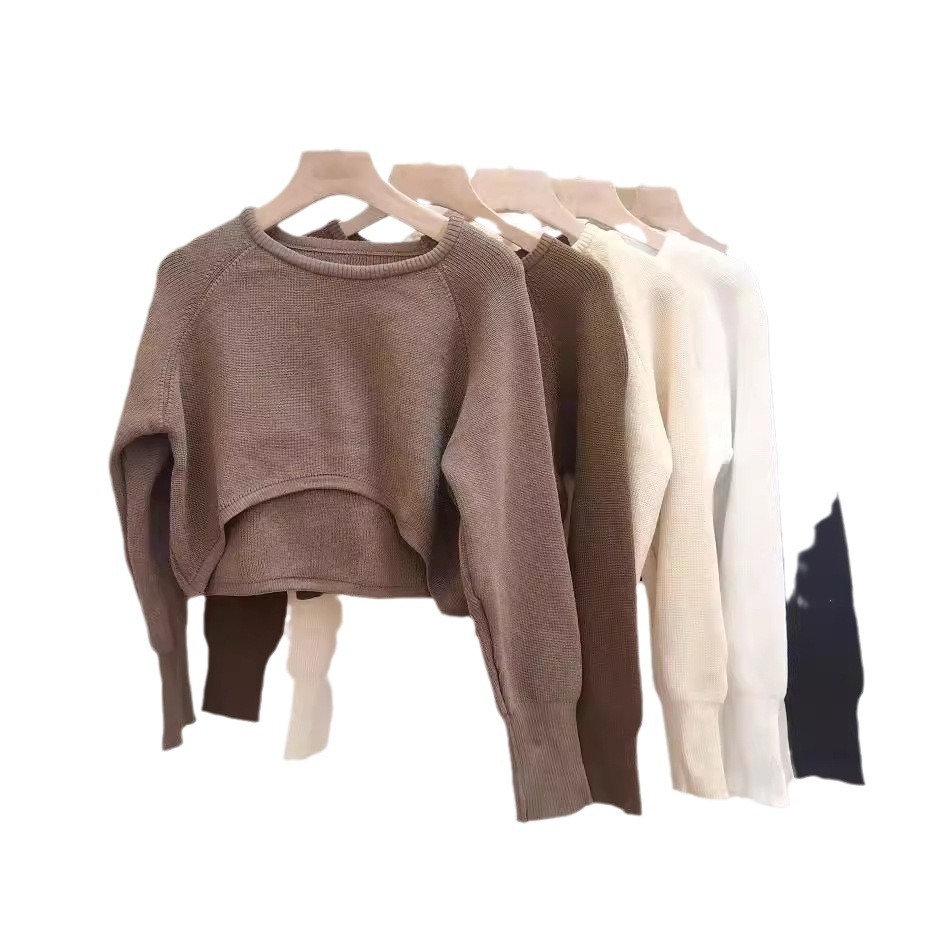Главная страница > Весенне-осенний новый повседневный стильный пуловер, свитер с высокой талией, полукроем, длинными рукавами, универсальный топ в ленивом стиле для женщин