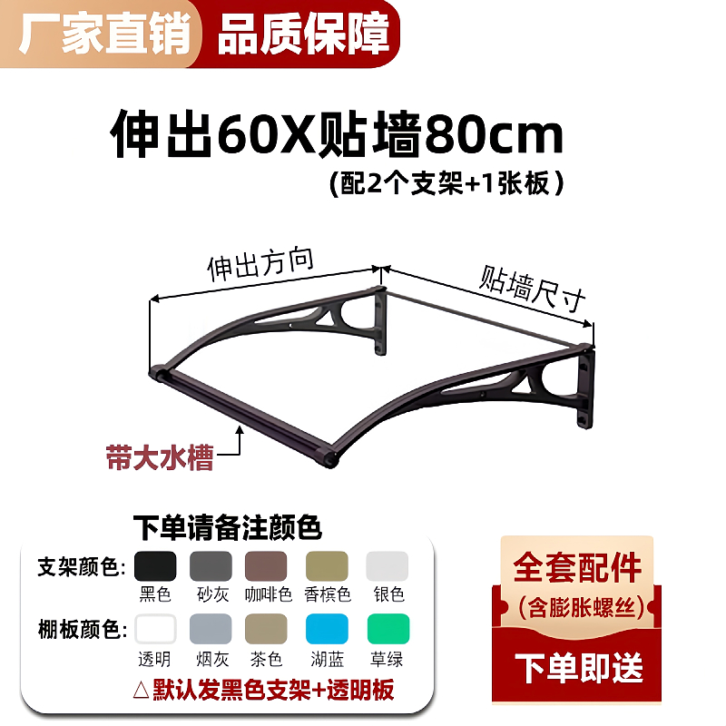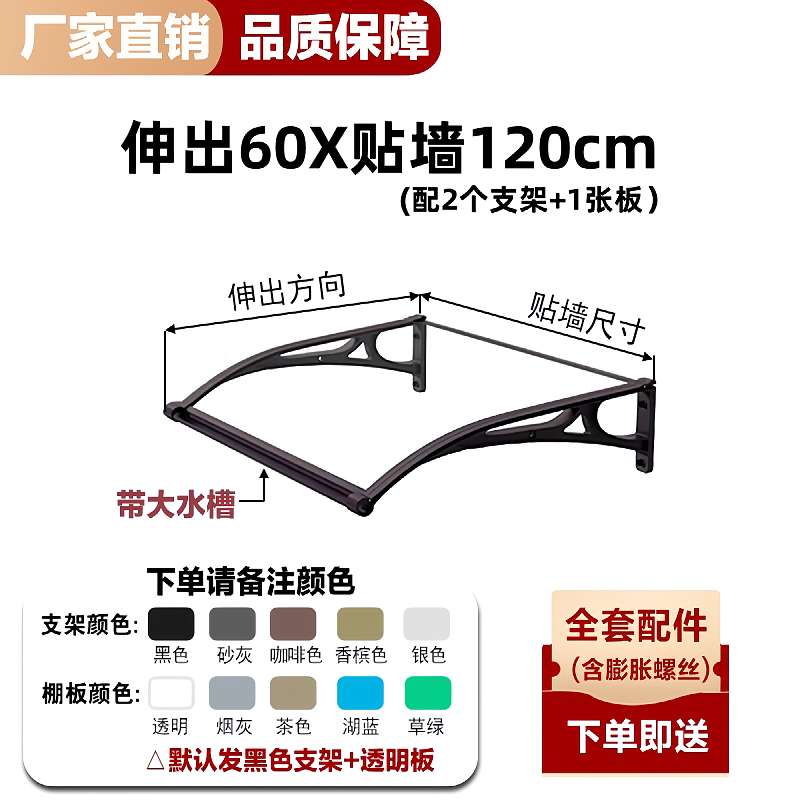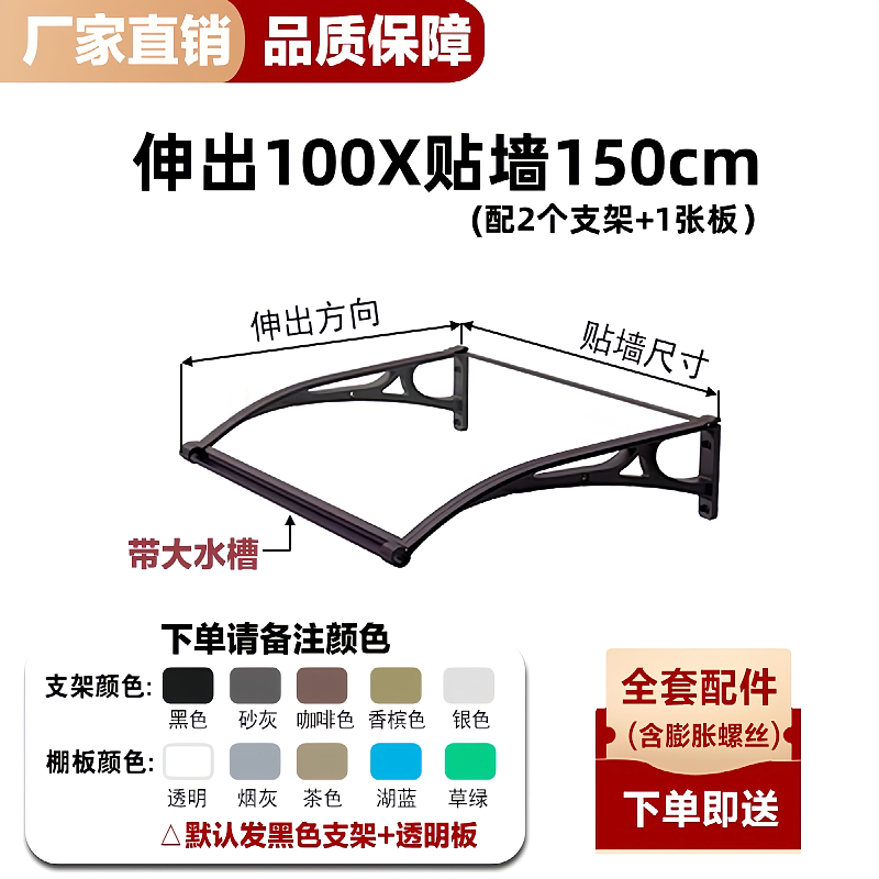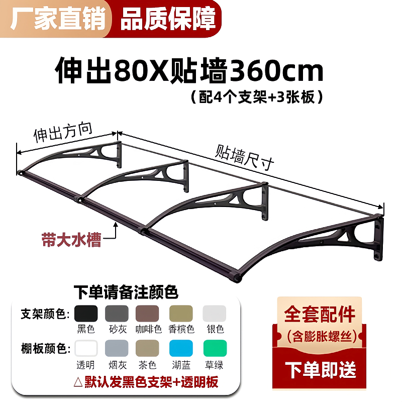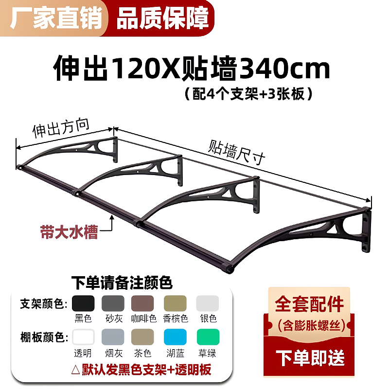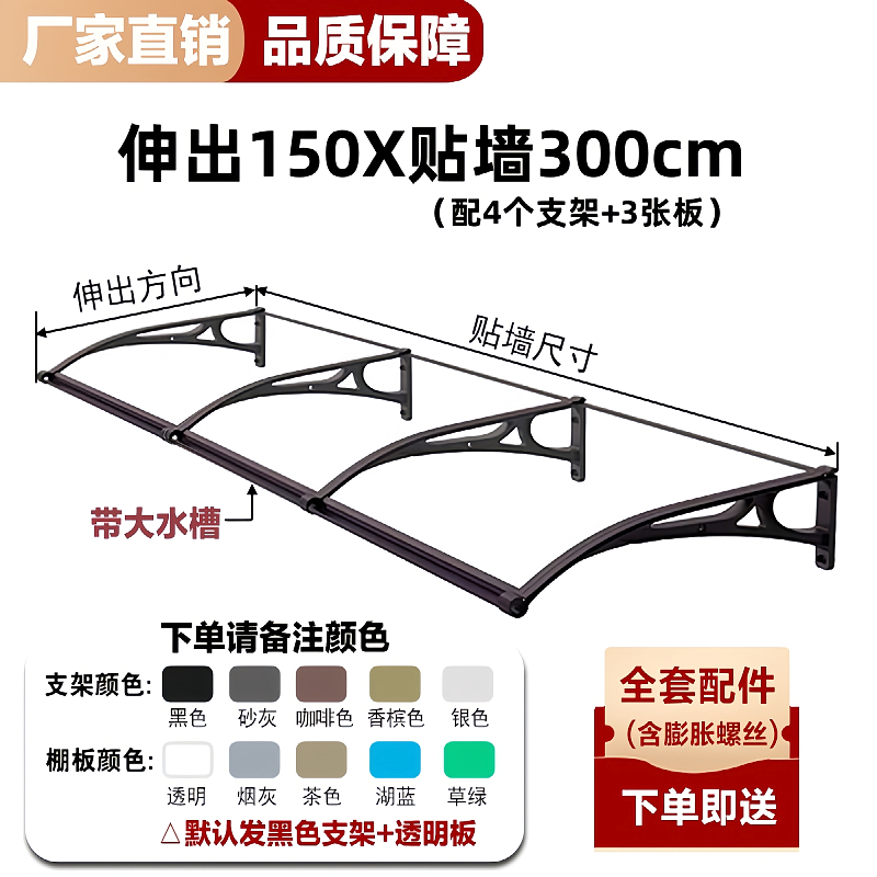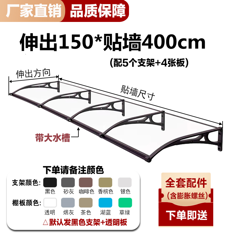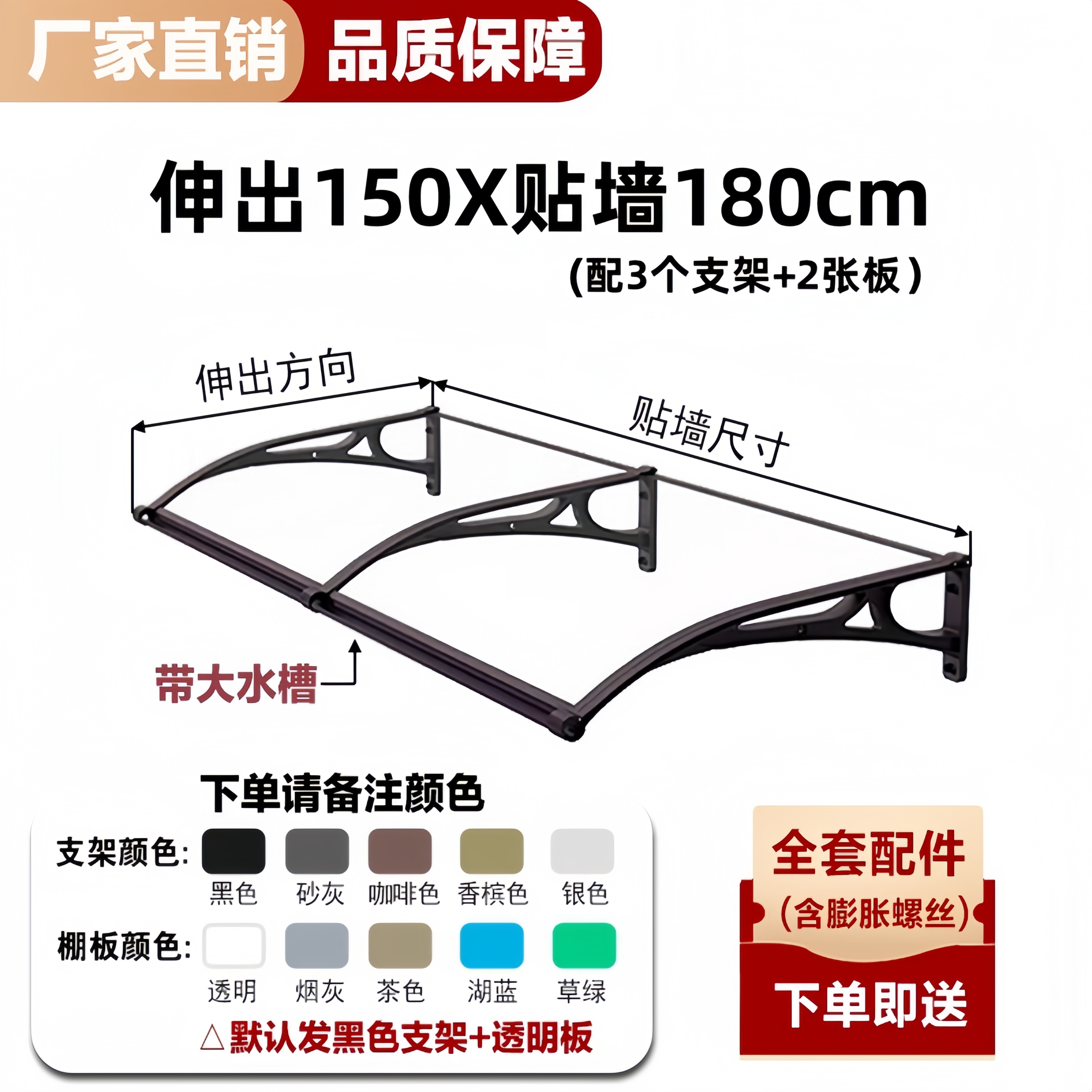 Главная страница > 铝合金雨棚大水槽遮阳棚家用户外阳台庭院窗户屋檐静音挡雨篷雨搭