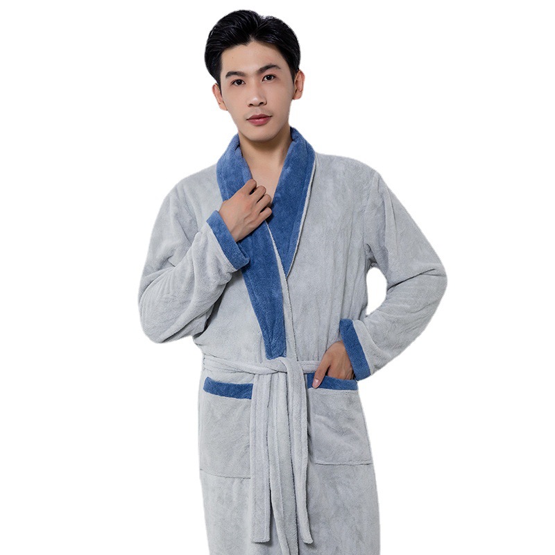 Халат, ночная рубашка, утолщенный и удлиненный, в европейском стиле, бежевый, в стиле знаменитостей, свободного кроя, в гостиничном стиле, из кораллового флиса в американском стиле.
