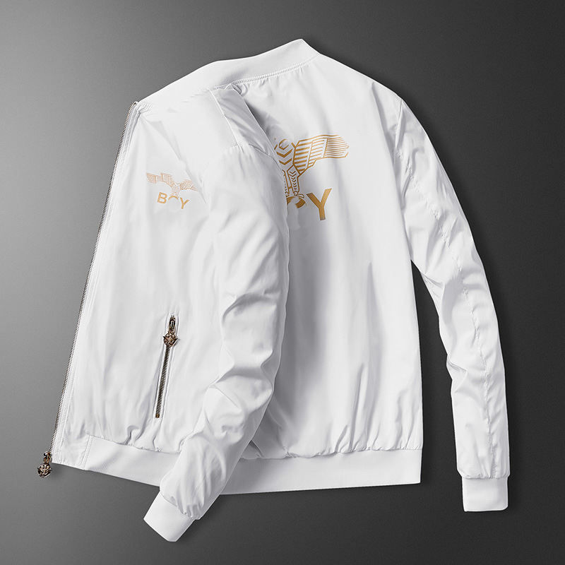 Главная страница > Весенне-осеннее пальто, мужская белая куртка с принтом, приталенный Топ с длинным рукавом и воротником-стойкой в Корейском стиле, мужская куртка