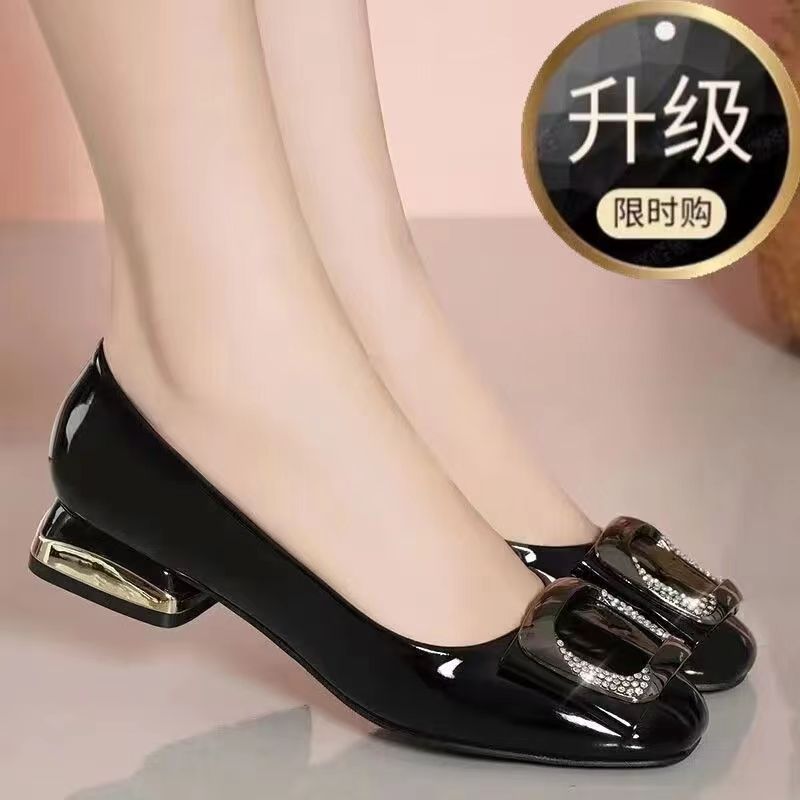 Главная страница > Маленькие кожаные туфли из лакированной кожи 2025 Большой размер женской обуви 41-43 широкие ноги толстые одиночные туфли женские весенние и осенние неглубокие рты на низком каблуке моды 42