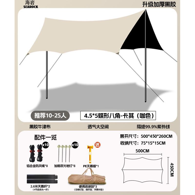 Виниловый большой тент-навес, водонепроницаемый, солнцезащитный, для кемпинга на открытом воздухе, большой, восьмиугольный, в форме бабочки