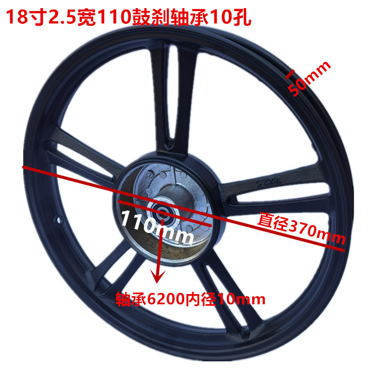 18 дюймов 2,5 Ширина 110 Барабанный тормоз Черный подшипник 10 мм