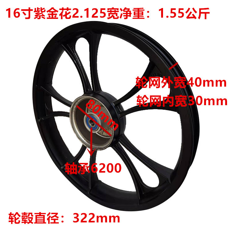 16 дюймов 2,5 широкий Цзиньхуа 110 барабанный тормозной подшипник 10 мм черный