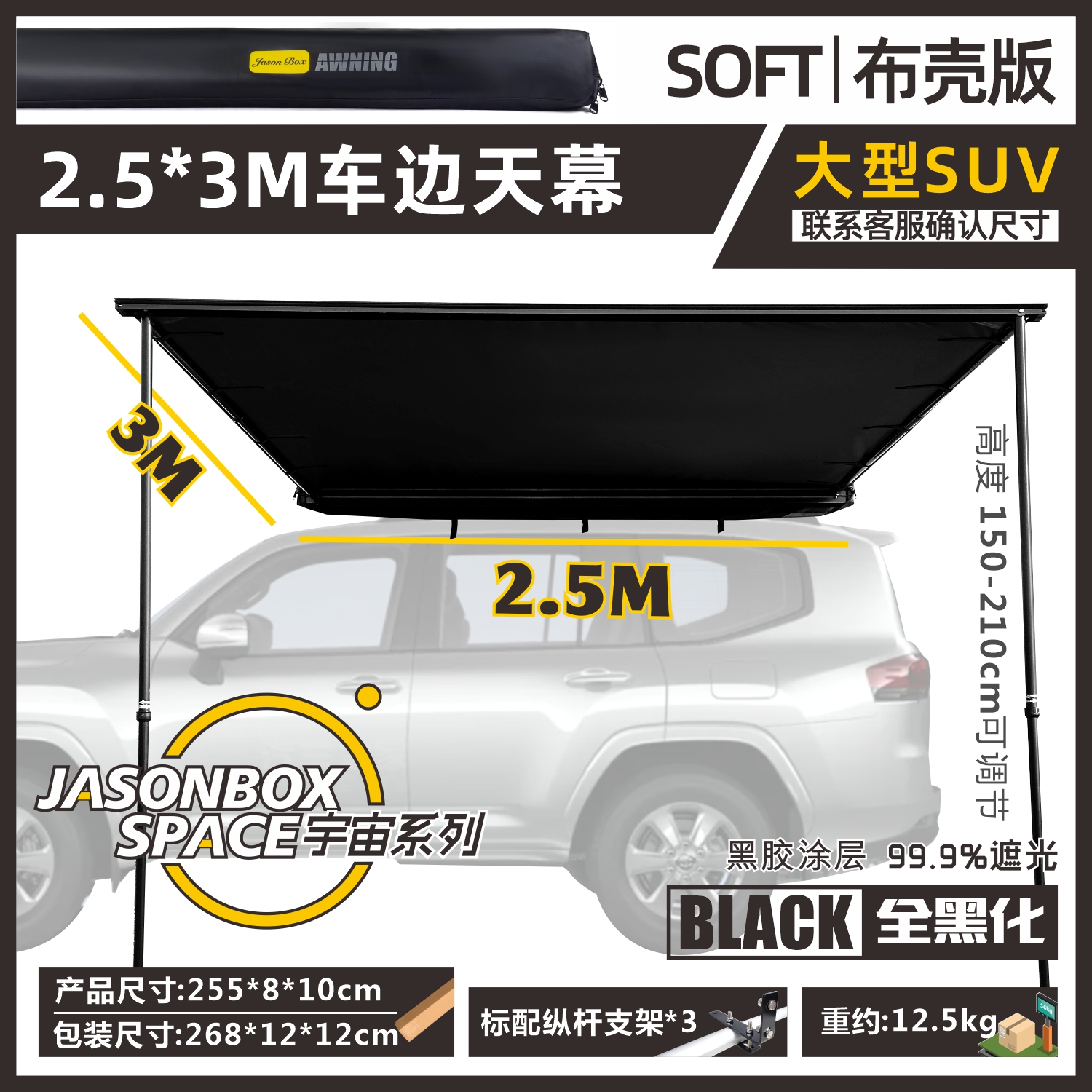 [Полностью черный тканевый корпус] Боковой навес автомобиля 2,5*3 м