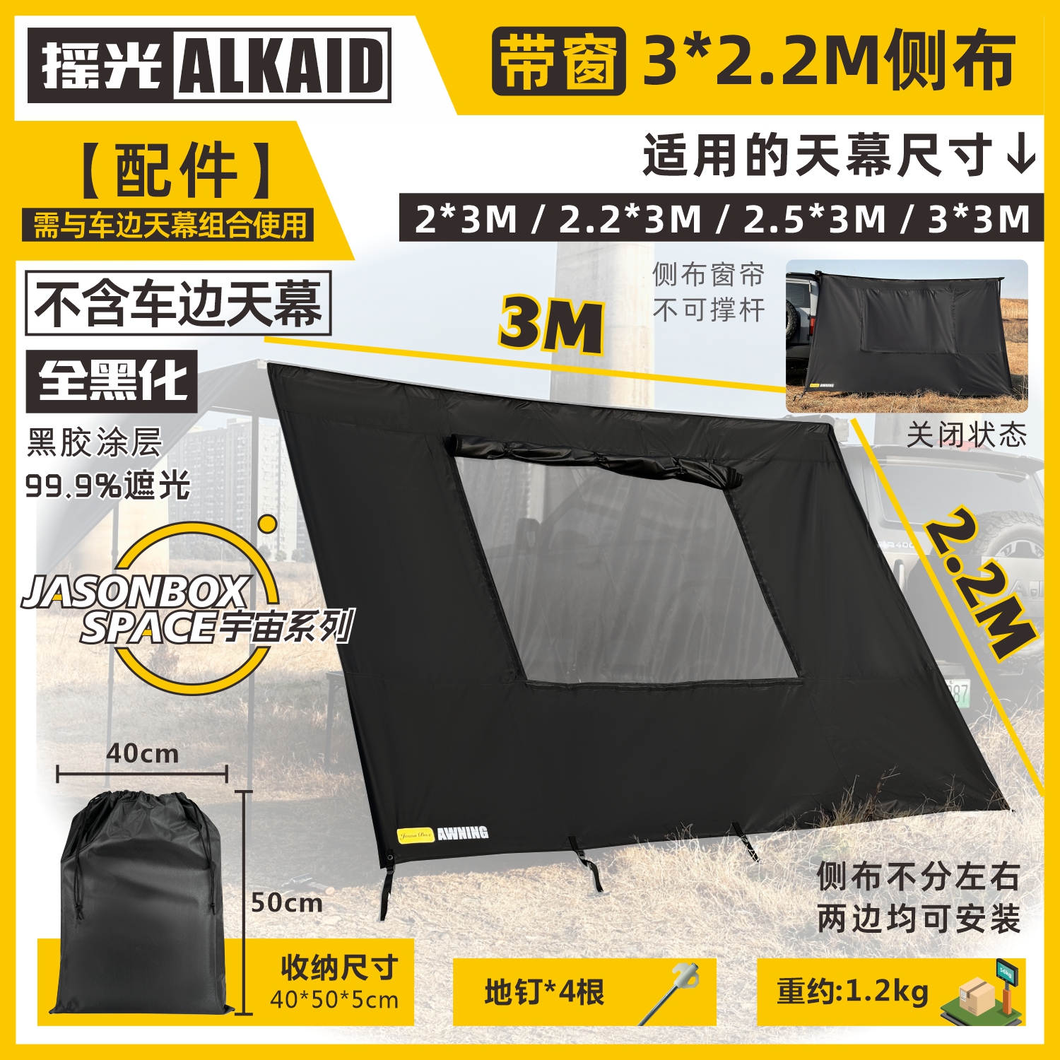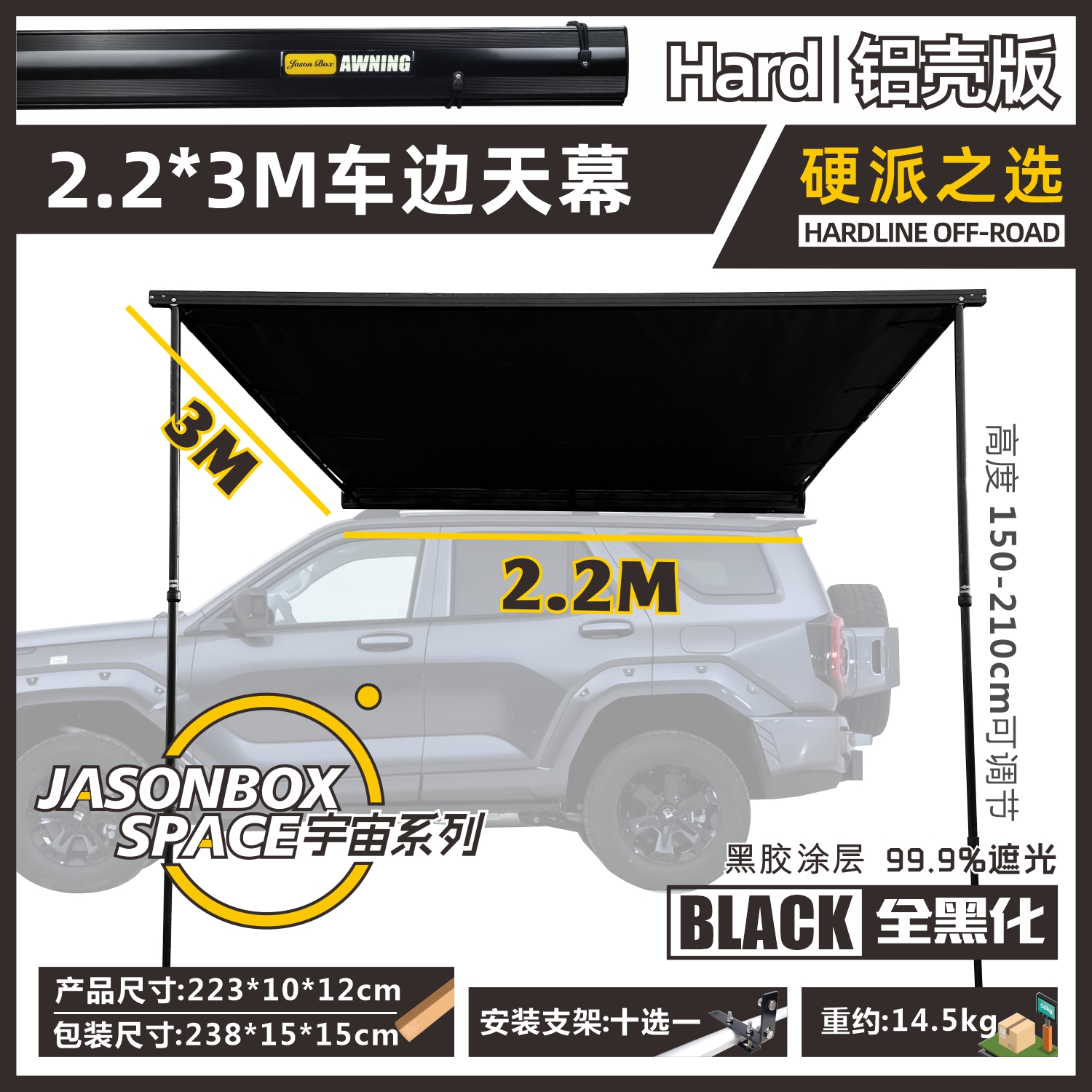 [Полностью черный алюминиевый корпус] Боковой навес автомобиля 2,2*3 м