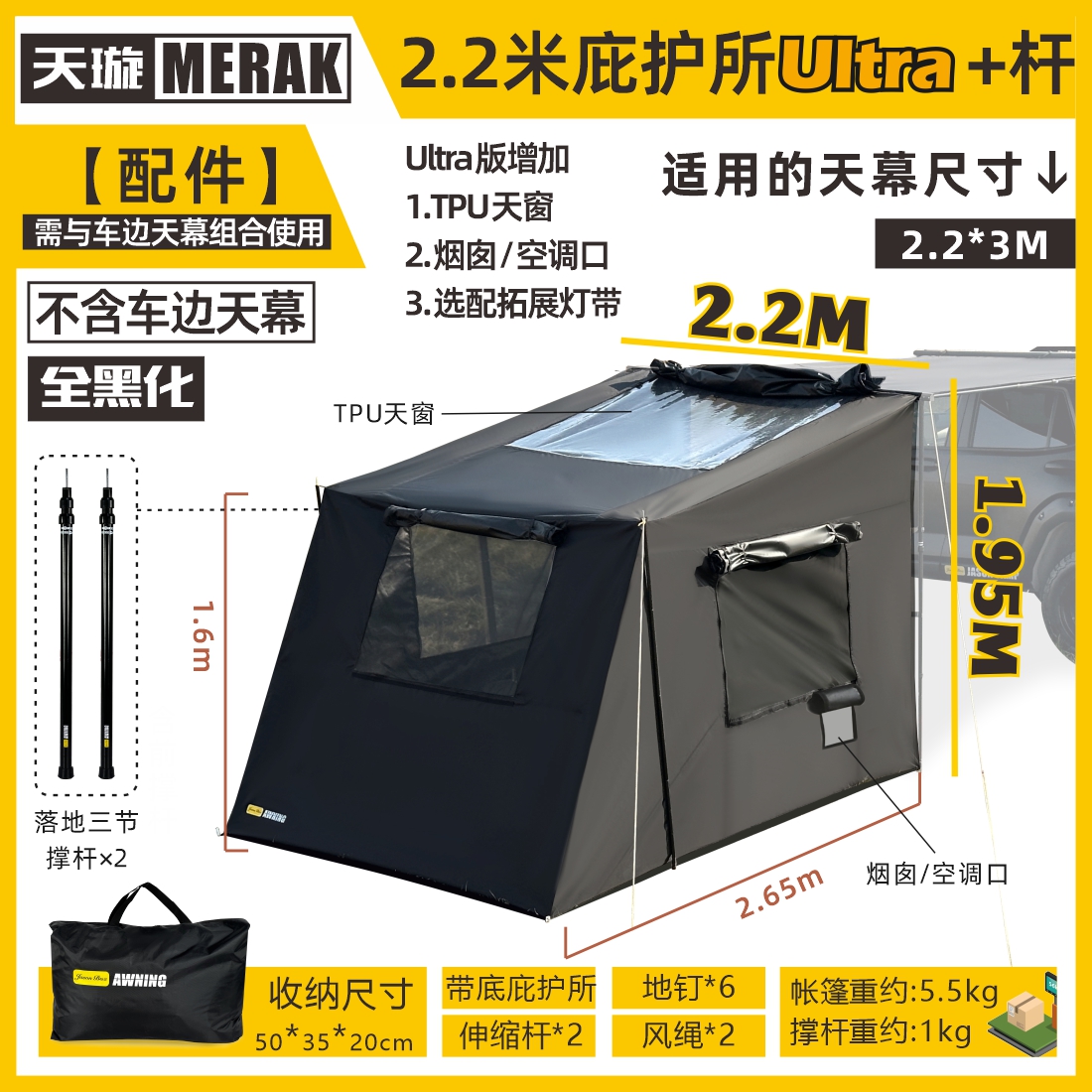 [Полностью черный тканевый корпус] Боковой навес автомобиля 2,2*3 м