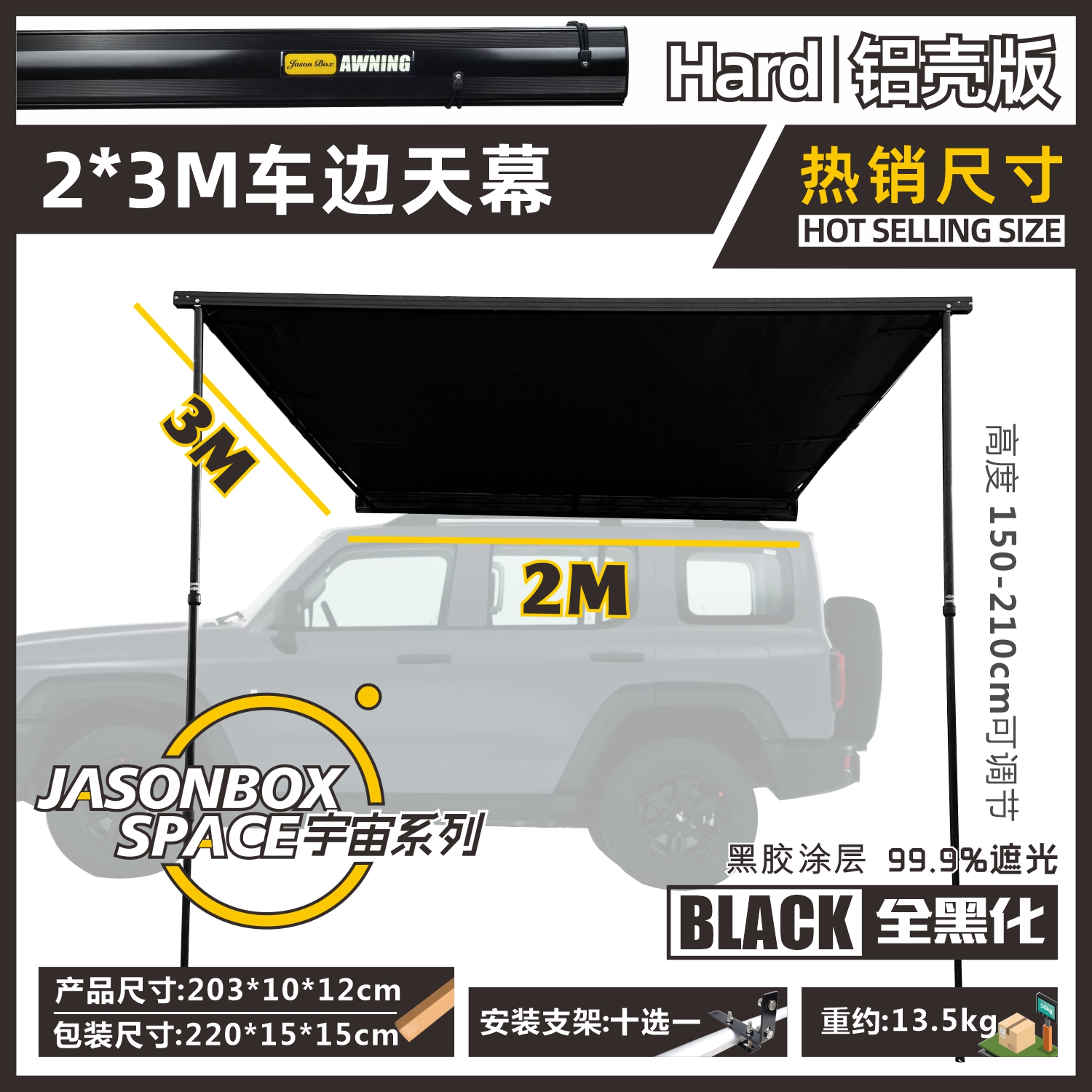 [Полностью черный алюминиевый корпус] Боковой навес автомобиля 2*3M