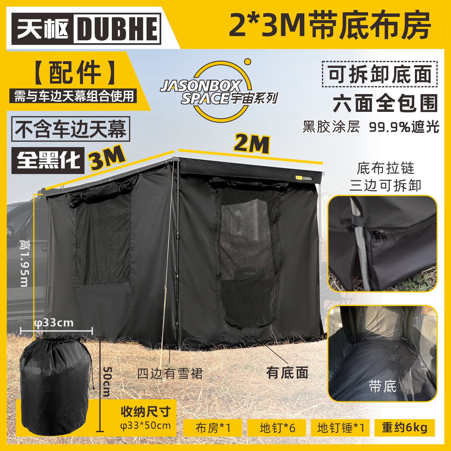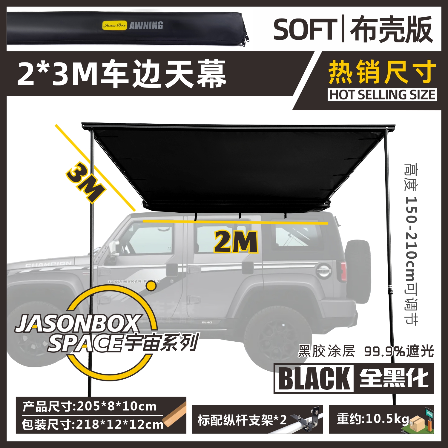 [Полностью черный тканевый корпус] Боковой навес автомобиля 2*3 м