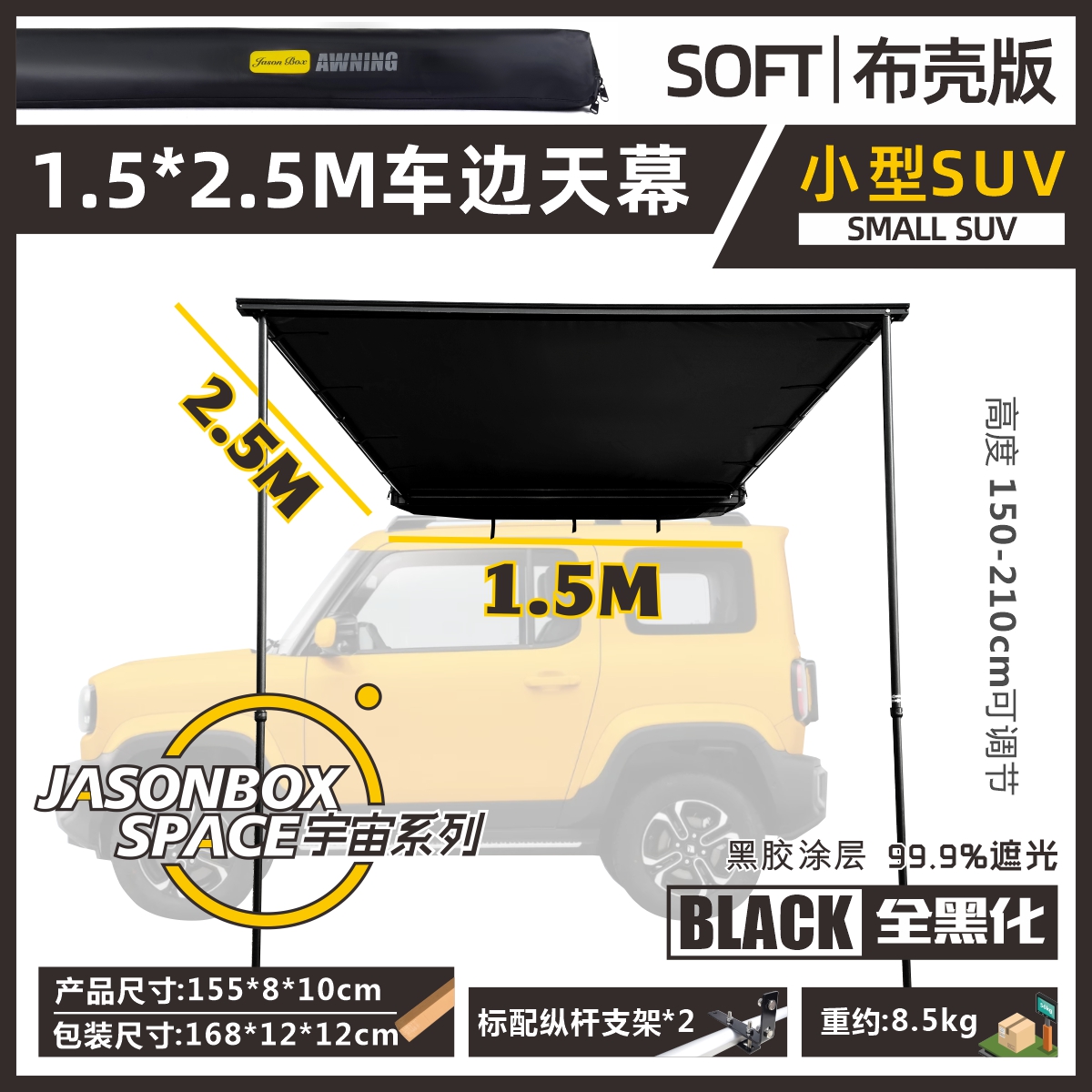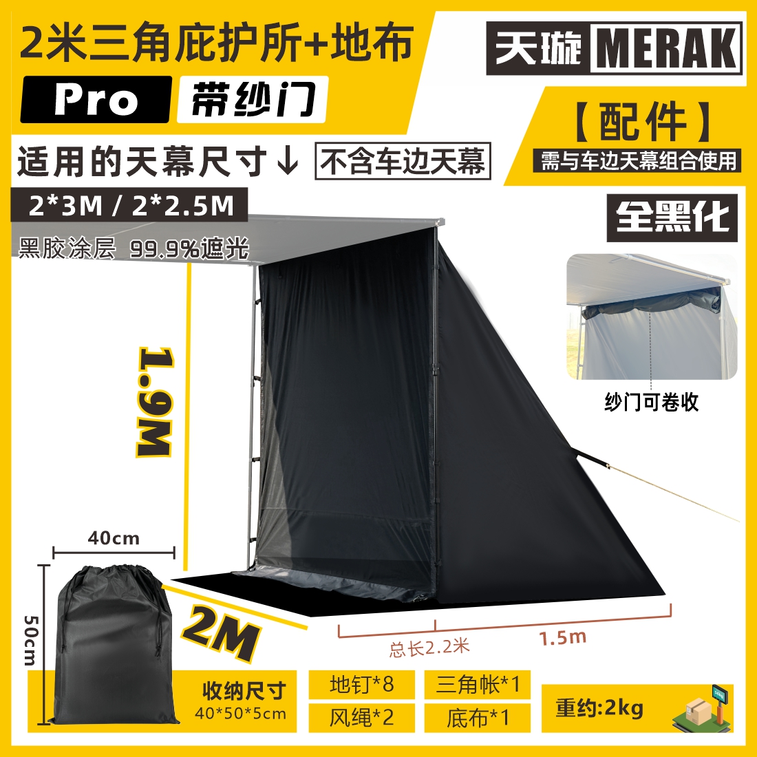 [Полностью черный тканевый корпус] Боковой навес автомобиля 1,8*2,5 м