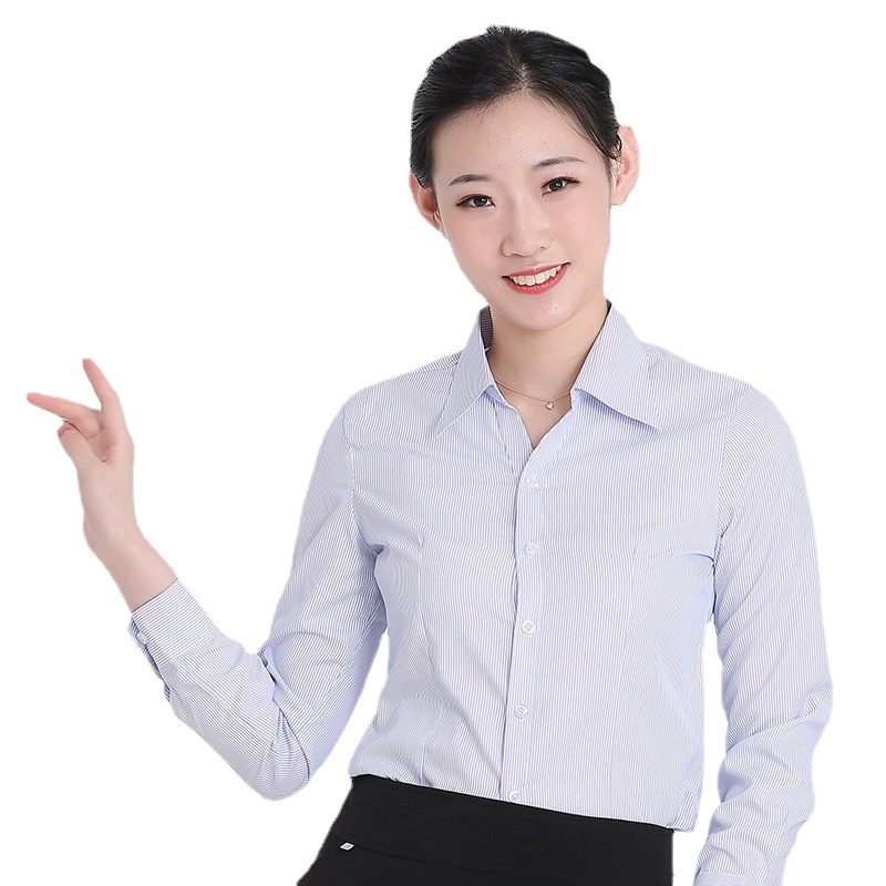 Главная страница > Белая низ, синяя рубашка в Вертикальную Полоску с длинными рукавами, Женская Осенняя рабочая одежда в банке с V-образным вырезом, приталенная рубашка больших размеров