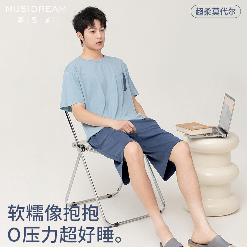Главная страница > [Lenzing Mo Cotton] Мужская домашняя одежда, хлопковые шорты с круглым вырезом и короткими рукавами, мужской пижамный комплект, прохладный и дышащий