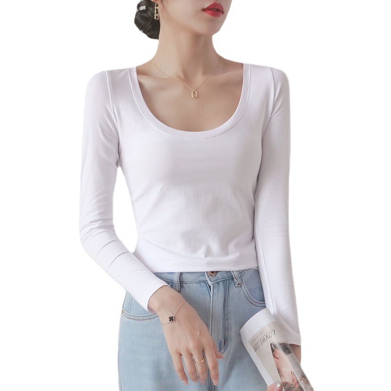 Главная страница > Белая женская футболка с длинным рукавом, базовый слой из чистого хлопка в корейском стиле, новинка весны-осени 2025, элегантная и подходящая для работы.