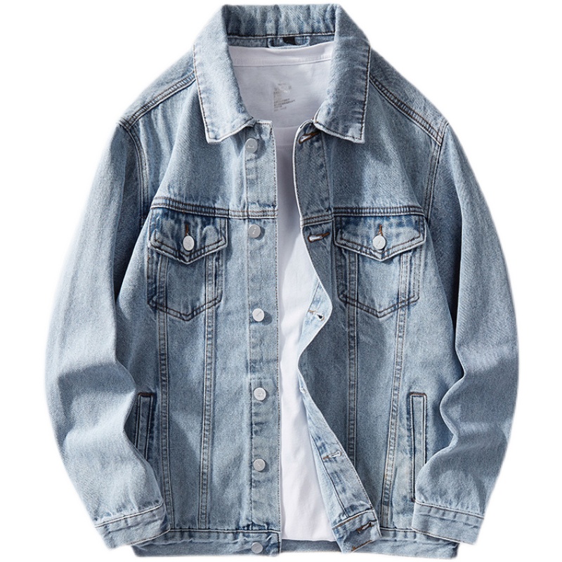 Главная страница > Мужская джинсовая куртка в американском стиле на весну и осень, новый модный бренд, свободное пальто в стиле ретро, однотонное, с отложным воротником, повседневное и стильное.