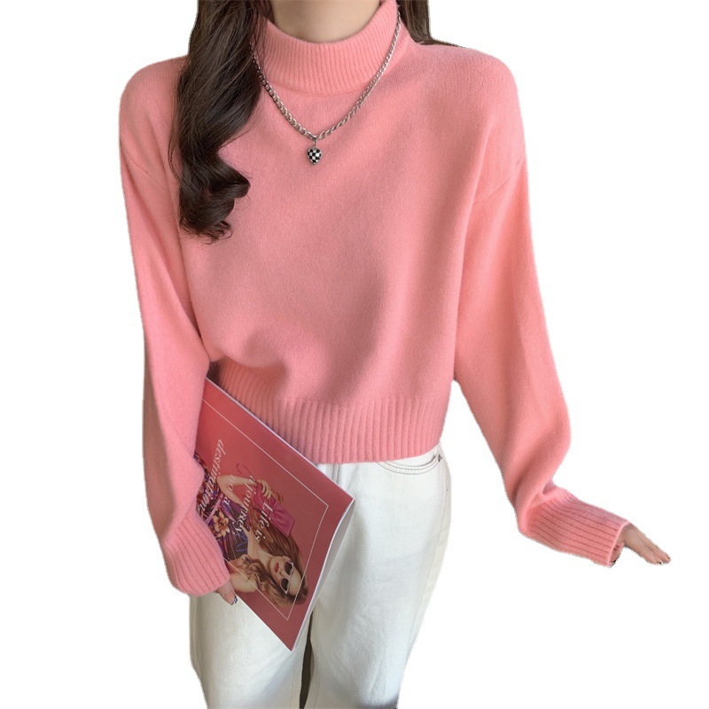 Главная страница > Ранняя осень 2023 Новый мягкий восковой пуловер, женский зимний утолщенный базовый вязаный свитер с половинным вырезом, короткий топ