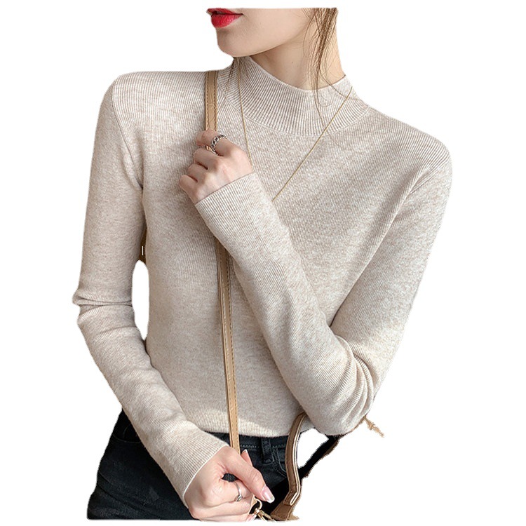 Главная страница > Рубашка с высоким воротом, осенне-зимний новый свитер из пряжи, Женский Универсальный свитер в западном стиле с длинными рукавами, внутренняя одежда, Тонкий Топ