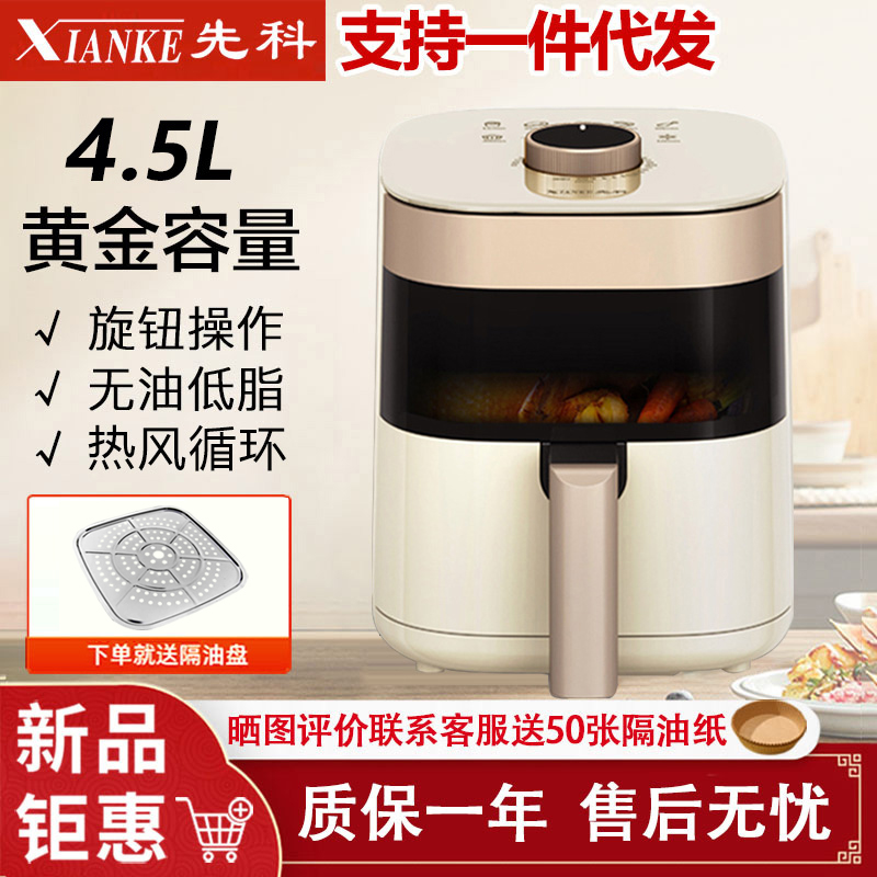 Мультифункциональная аэрофритюрница Xianke 5 л с большим объемом, для домашнего использования, с функцией гриля, электрическая фритюрница с поворотным регулятором, электрическая печь для жарки курицы