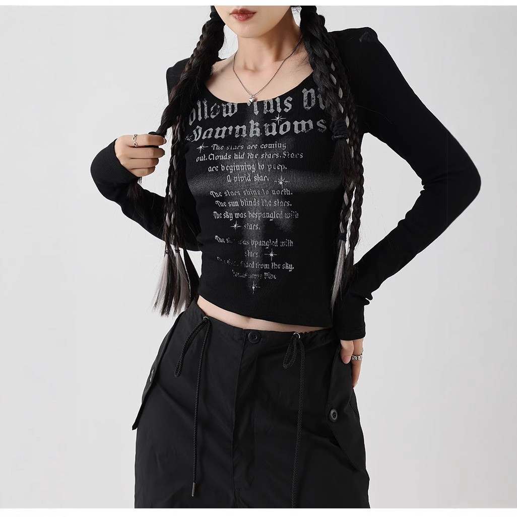 Главная страница > [Дизайнер] Американская сладкая горячая девушка с U-образным вырезом футболка с длинным рукавом
