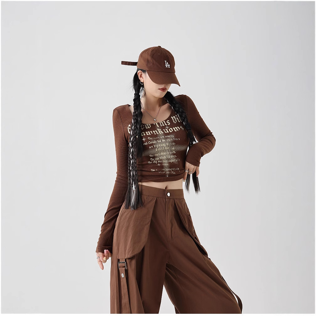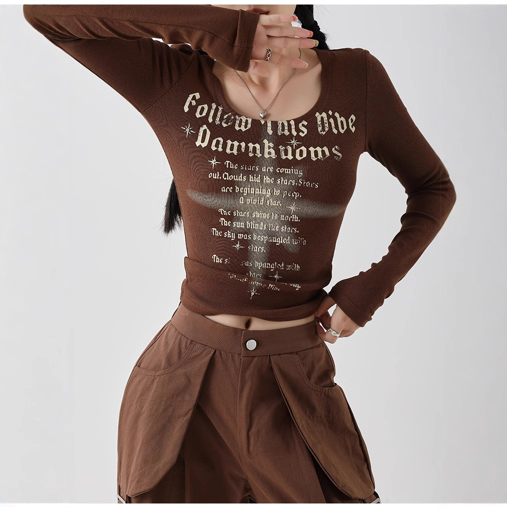 [Дизайнер] Американская сладкая горячая девушка с U-образным вырезом футболка с длинным рукавом