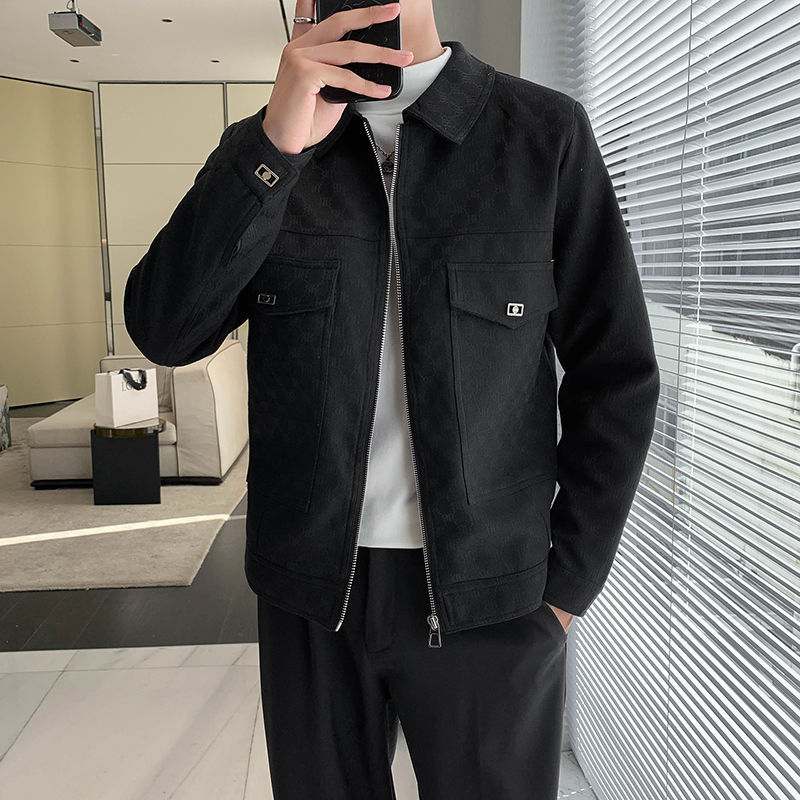 Главная страница > 2024, новая высококачественная жаккардовая повседневная куртка, мужская осенняя короткая верхняя одежда в корейском стиле с нишами и лацканами, красивый топ