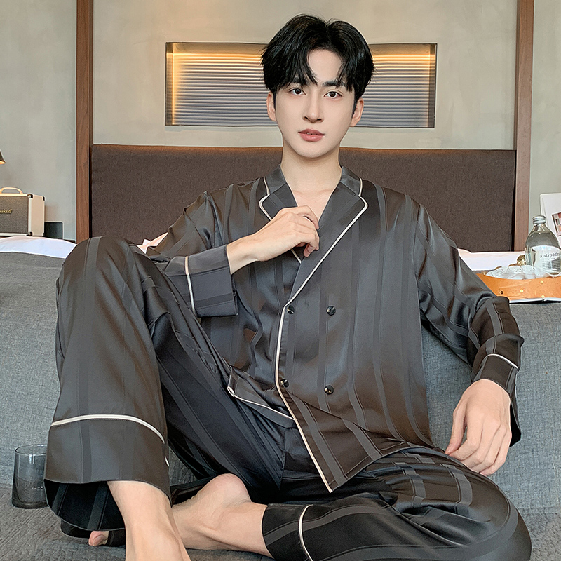 Главная страница > Мужские пижамы из ледяного шелка, новинка весны и осени 2025 года, тонкие, больших размеров, с длинными рукавами, домашняя одежда B6-533