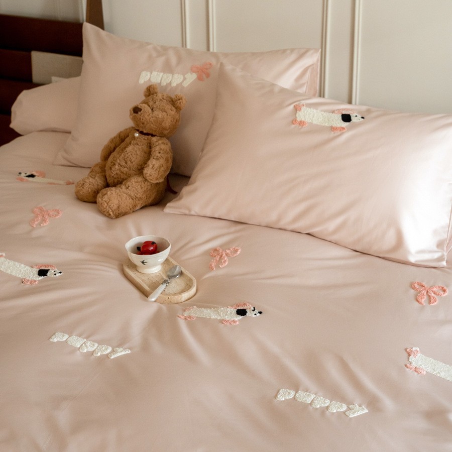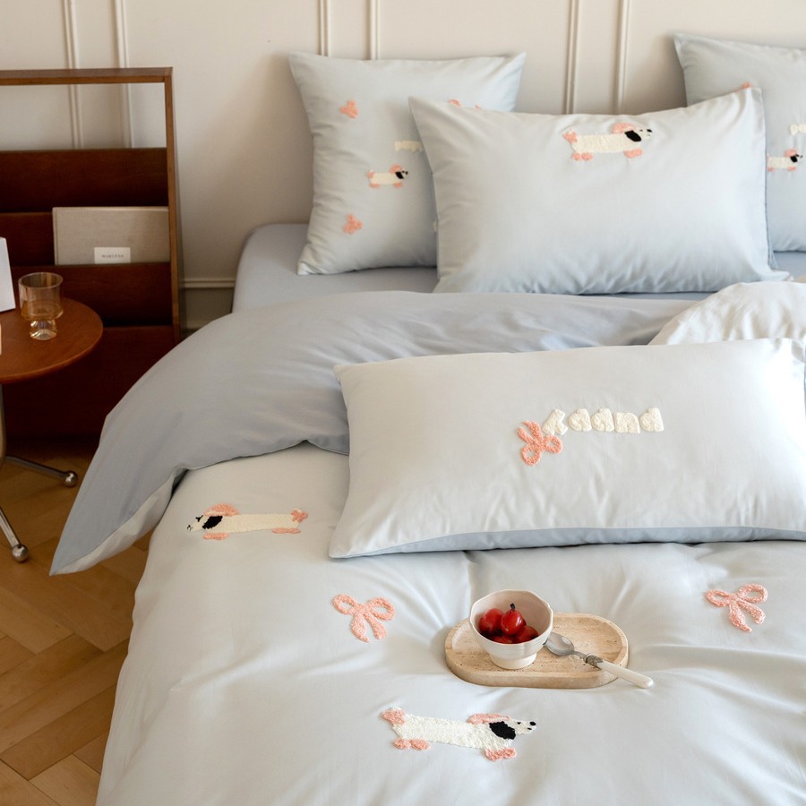 100s атласный длинноволокнистый хлопковый комплект из четырех предметов Милая мультяшная девушка сердце полотенце вышитая хлопковая кровать пододеяльник простыня