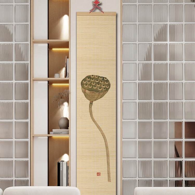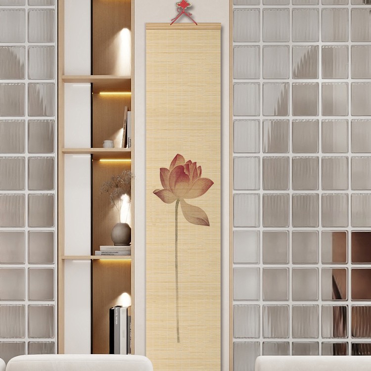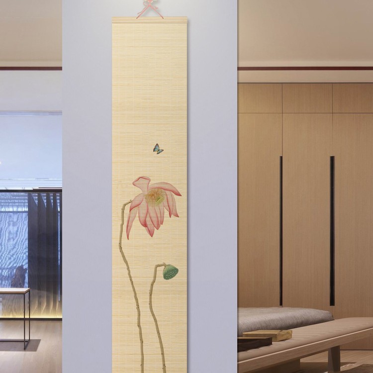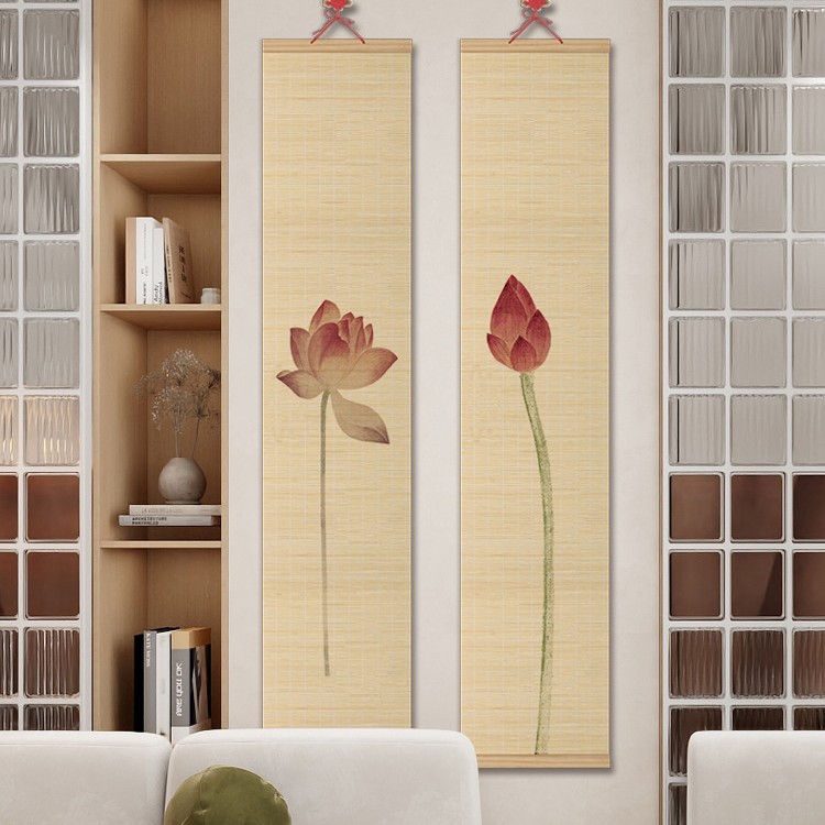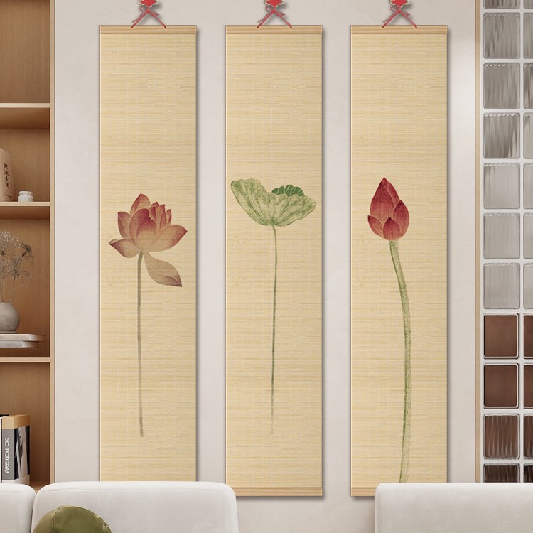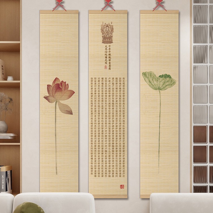 Главная страница > Новая картина для украшения гостиной в китайском стиле, дзен, чайная комната, печатная бамбуковая занавеска, подвесная картина для учебы, фон, свиток, каллиграфия, лотос, подвесная картина
