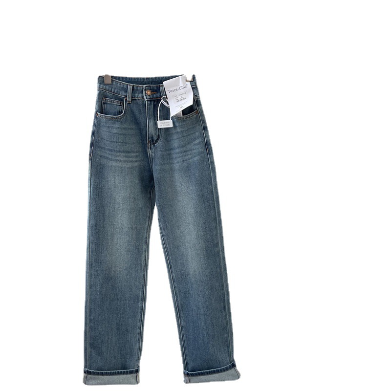 Главная страница > Тонкие прямые брюки из сверхмягкой пряжи с высокой талией, тонкие универсальные ностальгические синие эластичные джинсы, женские Новинка весны и осени