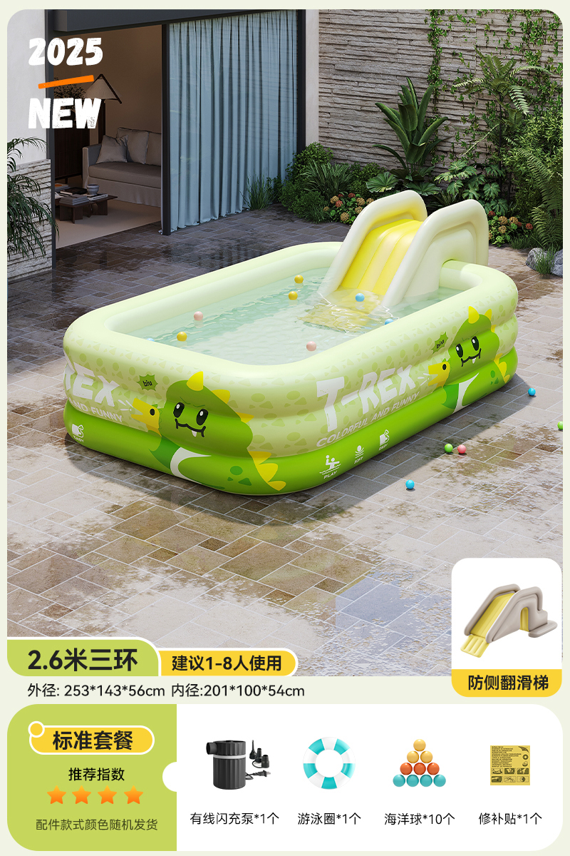 Зеленый динозавр 2.4m колец| Тент + большая горка + Гатлинг