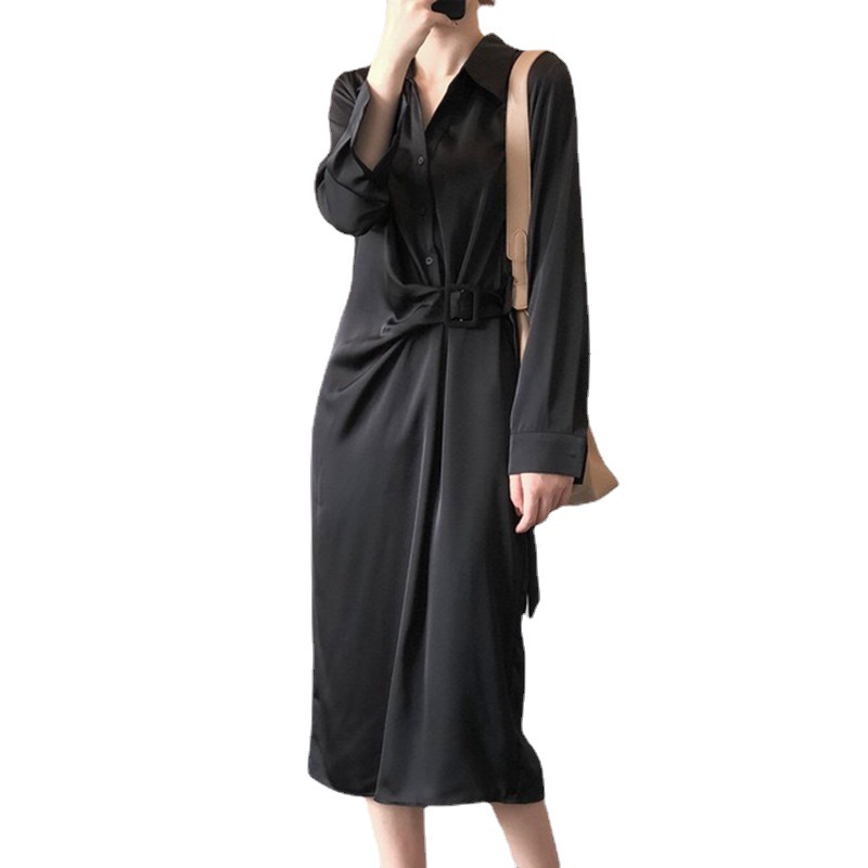 Главная страница > Высококачественная атласная рубашка в Корейском стиле, платье с длинными рукавами, женское Элегантное Длинное платье высокого класса с нишевым дизайном для женщин