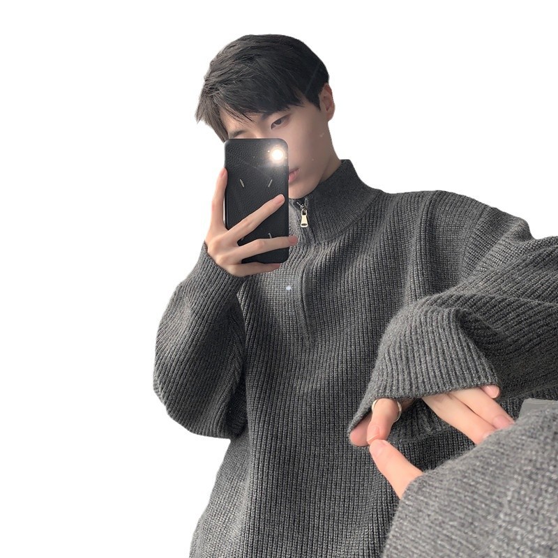 Главная страница > Полузастежка на молнии свитер для мужчин 2024 осень и зима новый ленивый ветер красивый ретро свободный повседневный свитер куртка