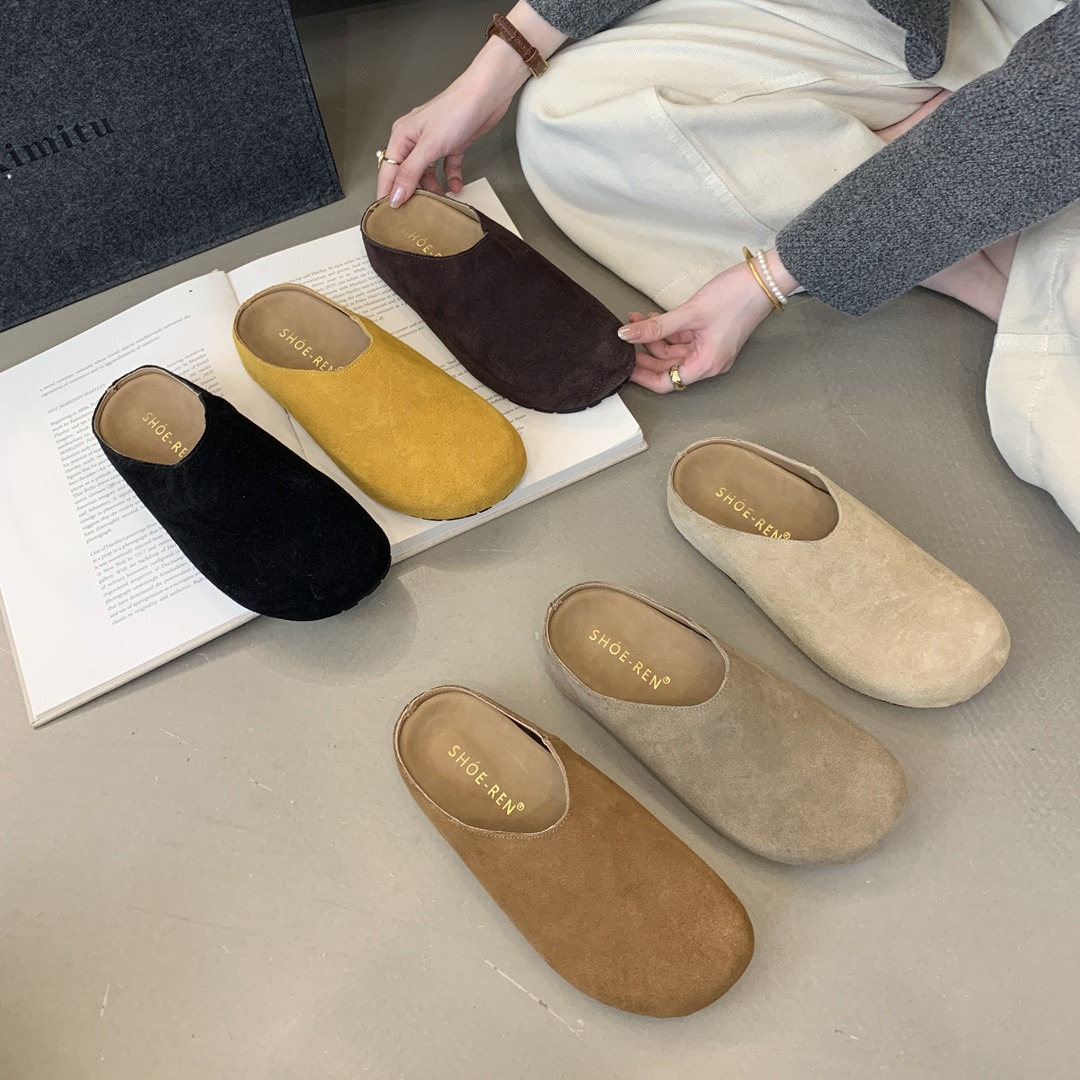 Главная страница > xieyiren, новинка осени 2024, новинка 2024, толстая подошва, внутренняя обувь на плоской подошве с глубоким вырезом и круглым носком, туфли Birkenstock, женские тапочки Baotou