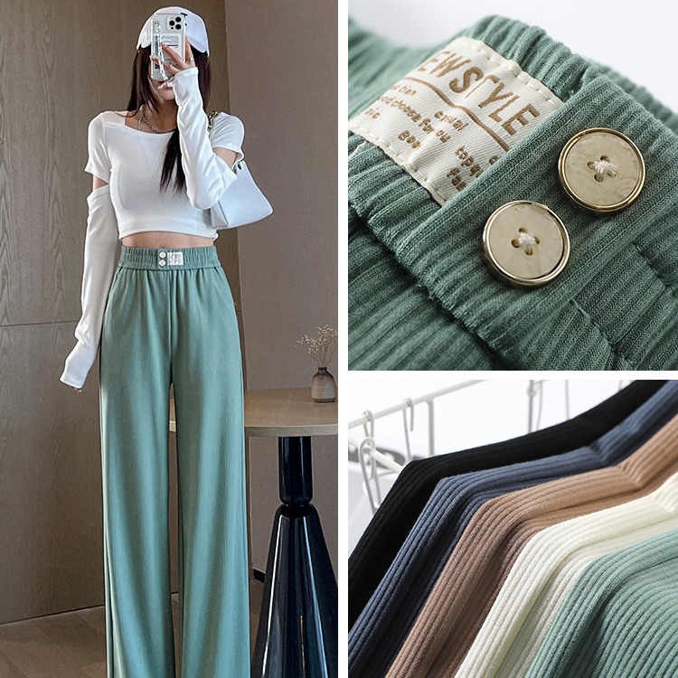 Главная страница > Широкие спортивные брюки из ледяного шелка, летние свободные прямые брюки 2025, с высокой талией, драпированные, повседневные, в европейском и американском стиле, женские