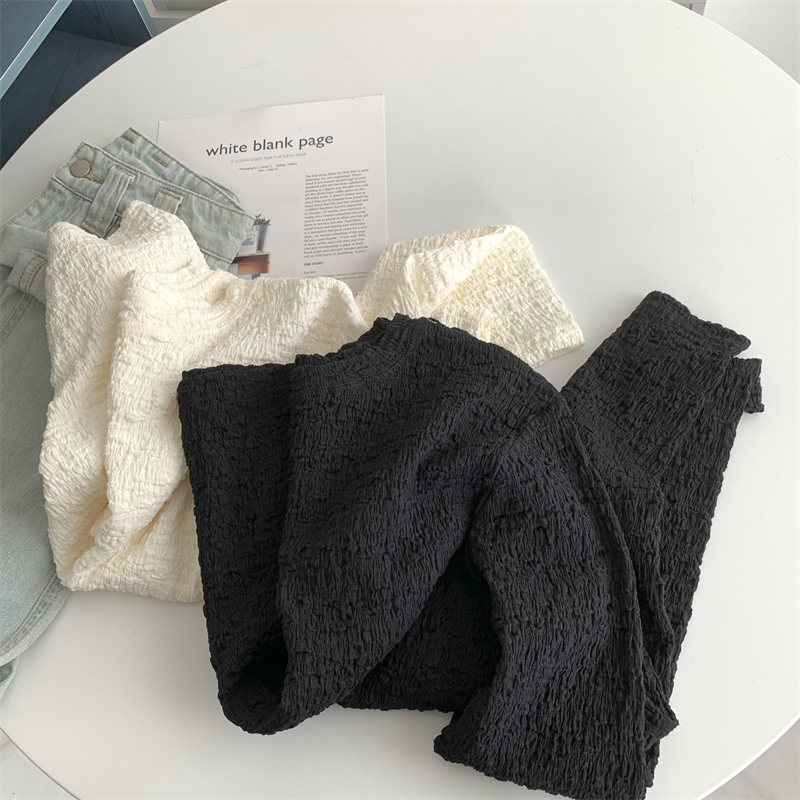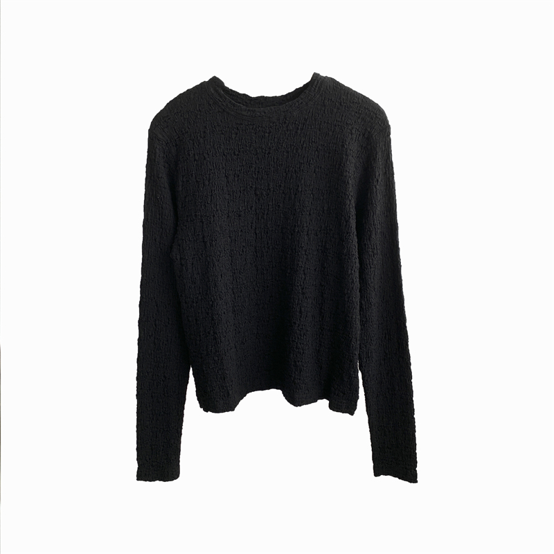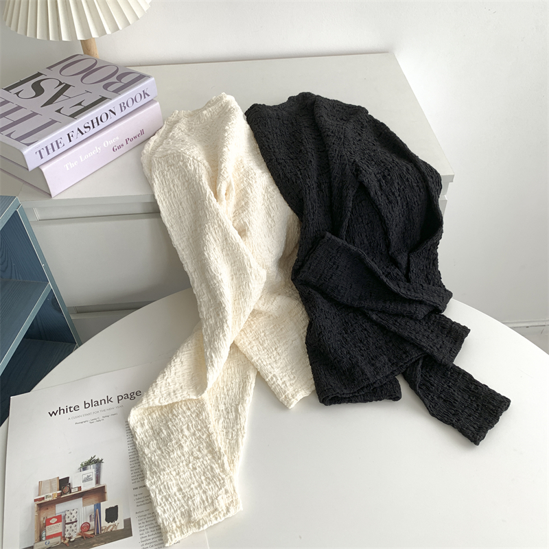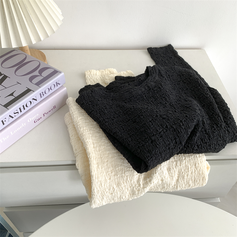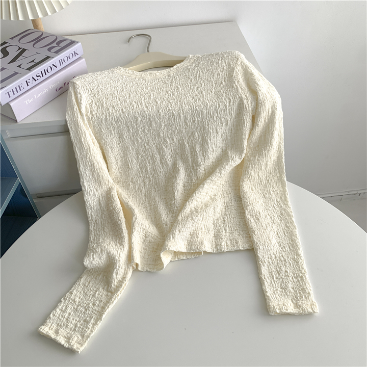 Главная страница > Плиссированная хлопковая рубашка с длинными рукавами и круглым вырезом для женщин, нежная абрикосовая элегантная, облегающая, весенне-осенняя футболка
