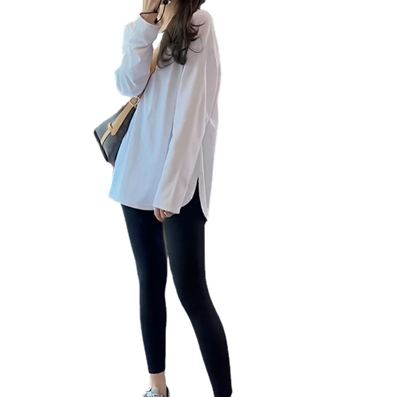 Главная страница > Женская хлопковая футболка средней длины с длинным рукавом, весна, осень и зима, свободная флисовая подкладка в западном стиле, утепленная теплая Базовая рубашка с разрезом, модная
