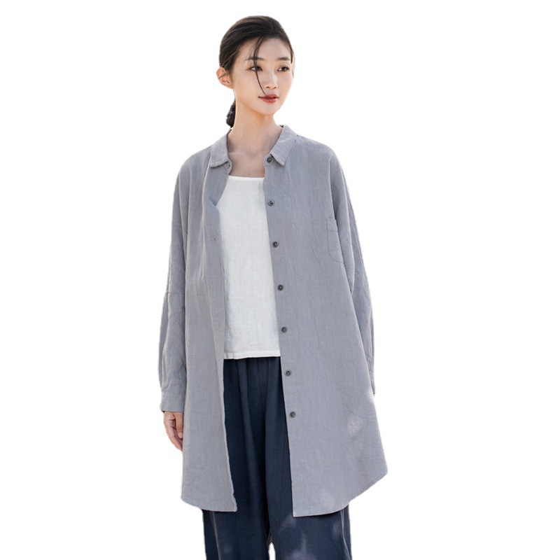 Новая осенняя коллекция: Худи-кардиган женский из рами, с эффектом песочной стирки, средней длины, с отложным воротником, длинным рукавом, приталенный, повседневный, в стиле арт-дирекшн