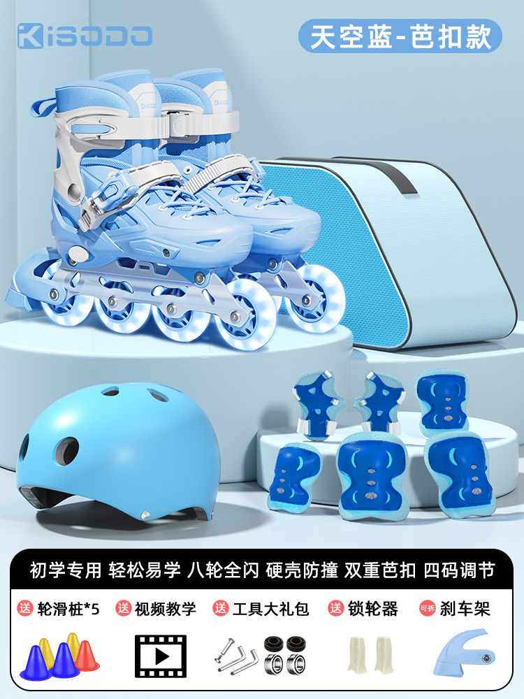Небесно-голубой [улучшенный стиль пряжки] Защита шлема + набедренная подушка + рюкзак + замок на колесо + подарочный пакет