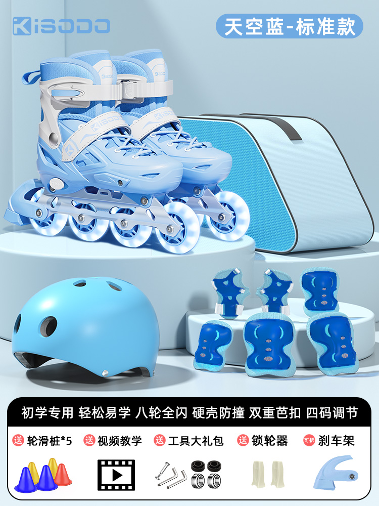 Небесно-голубой [стандартный стиль] Защита шлема + набедренная подушка + рюкзак + замок на колесо + подарочный пакет