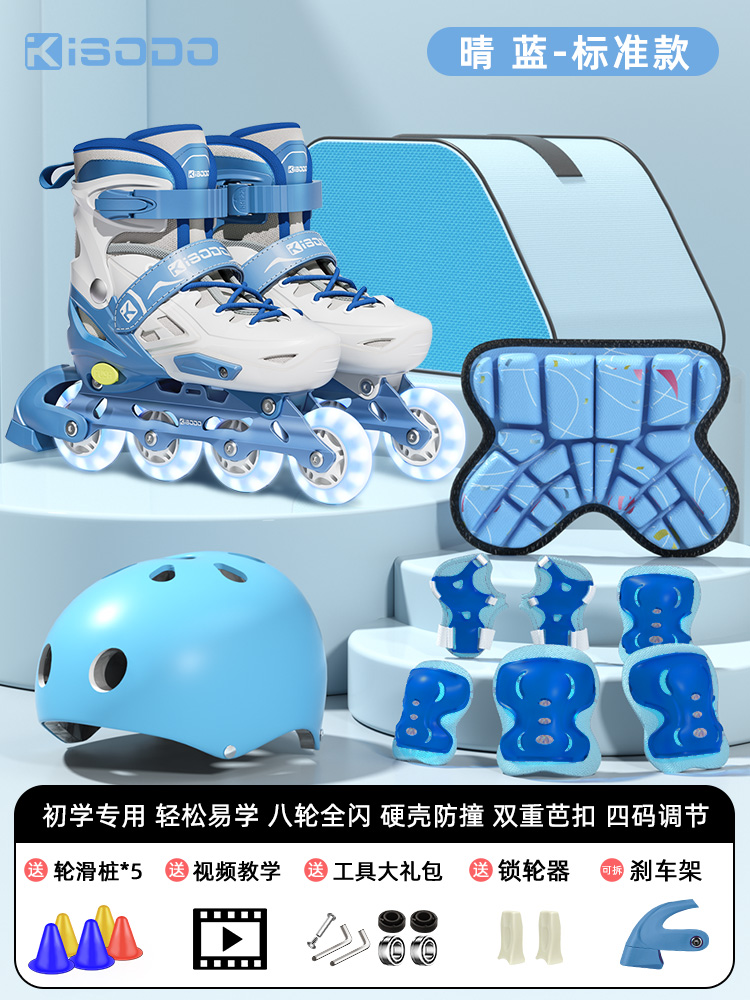 Прозрачный синий [стандартный стиль] Защита шлема + набедренная подушка + рюкзак + замок на колесо + подарочный пакет