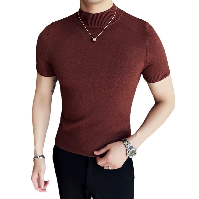 Главная страница > Свитер с половинным вырезом Мужская тонкая весна и осень 2024 новая футболка с короткими рукавами средний воротник мужской трикотажный свитер
