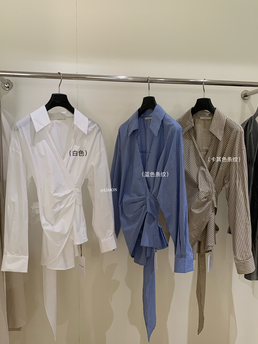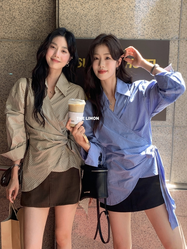 Главная страница > Женская рубашка-поло с длинными рукавами в полоску и завязками по бокам, в корейском стиле, из коллекции LIMON, цвет лимонно-зеленый, ранняя осень.
