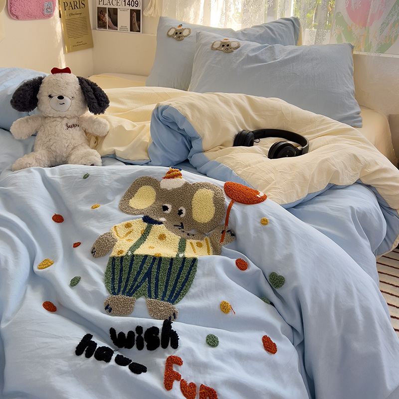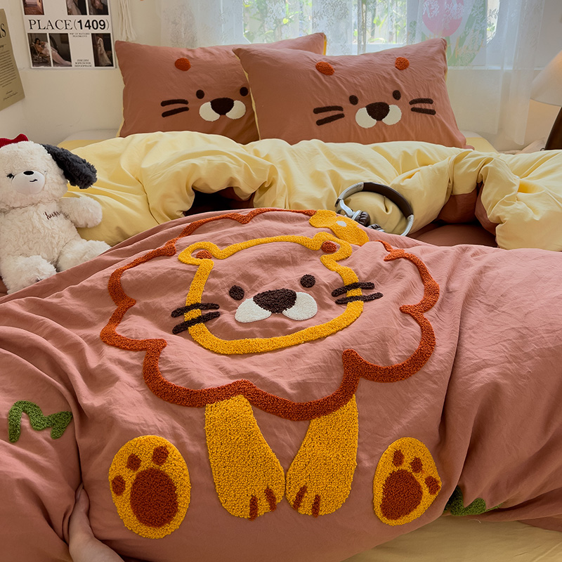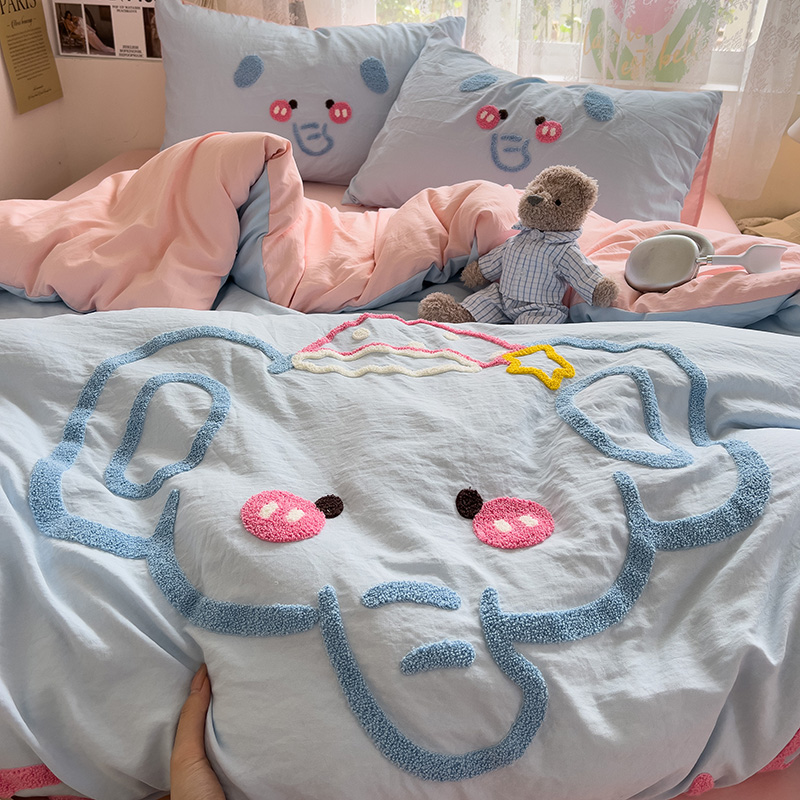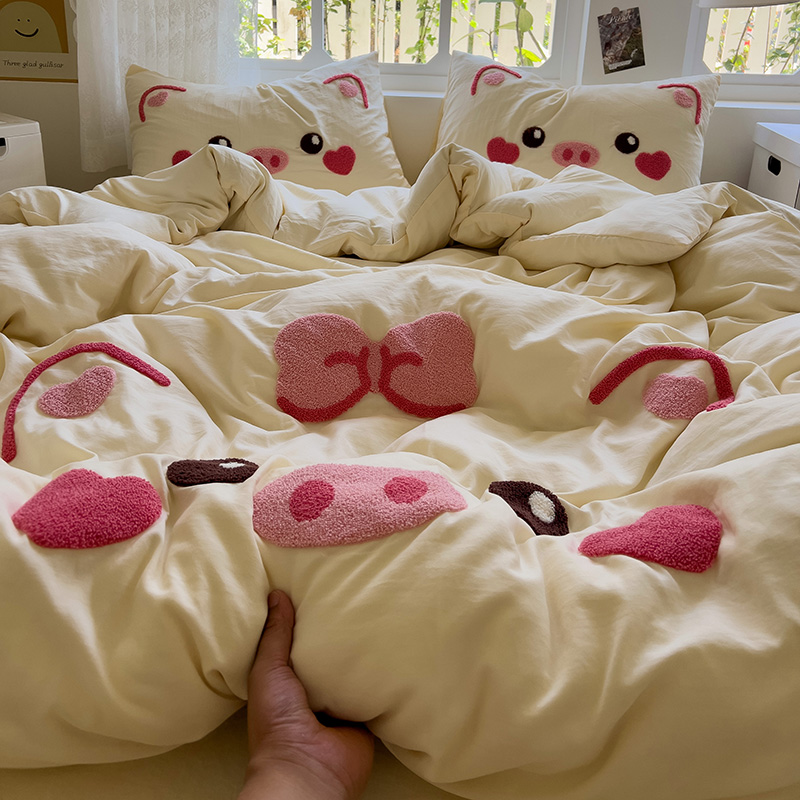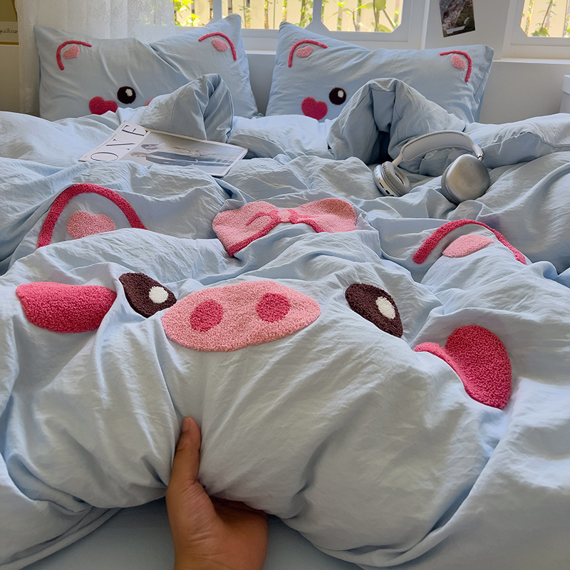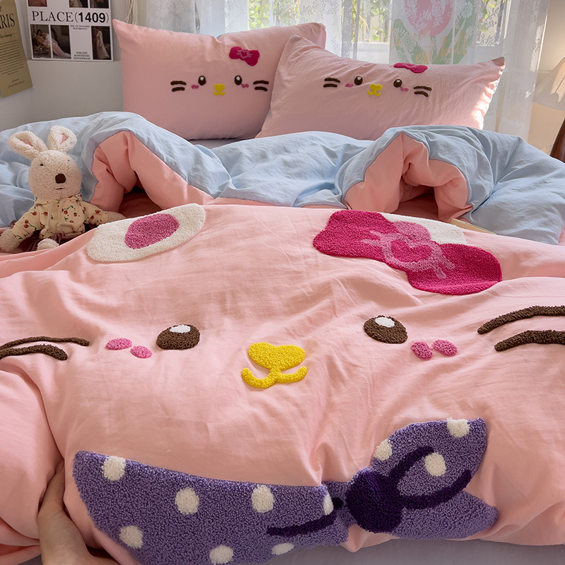 Главная страница > Полотенце с вышивкой, пододеяльник с рисунком из мультфильма, постельное белье класса А, комплект из 4 предметов из чистого хлопка, простыни из чистого хлопка, супер мягкий комплект из трех предметов для сна обнаженным