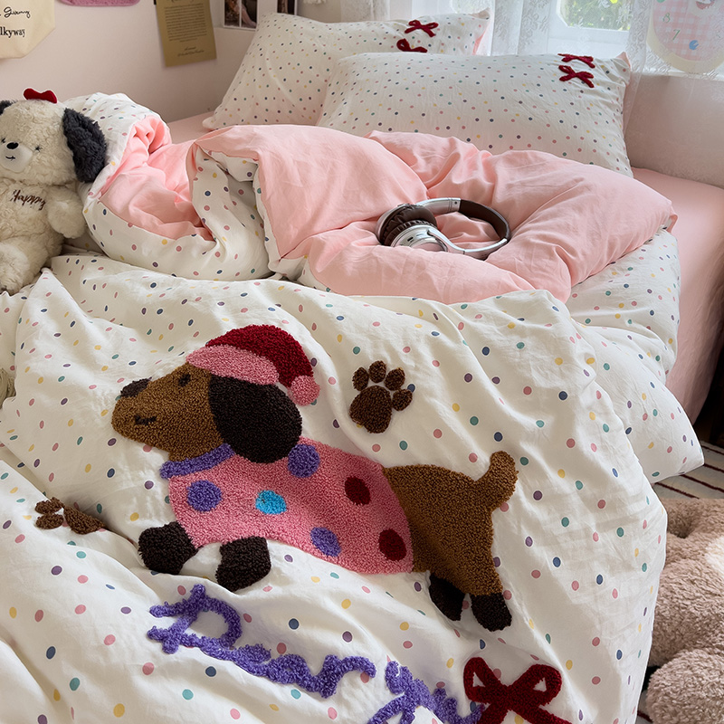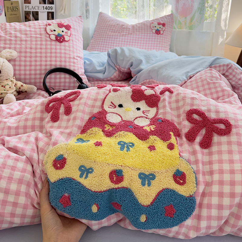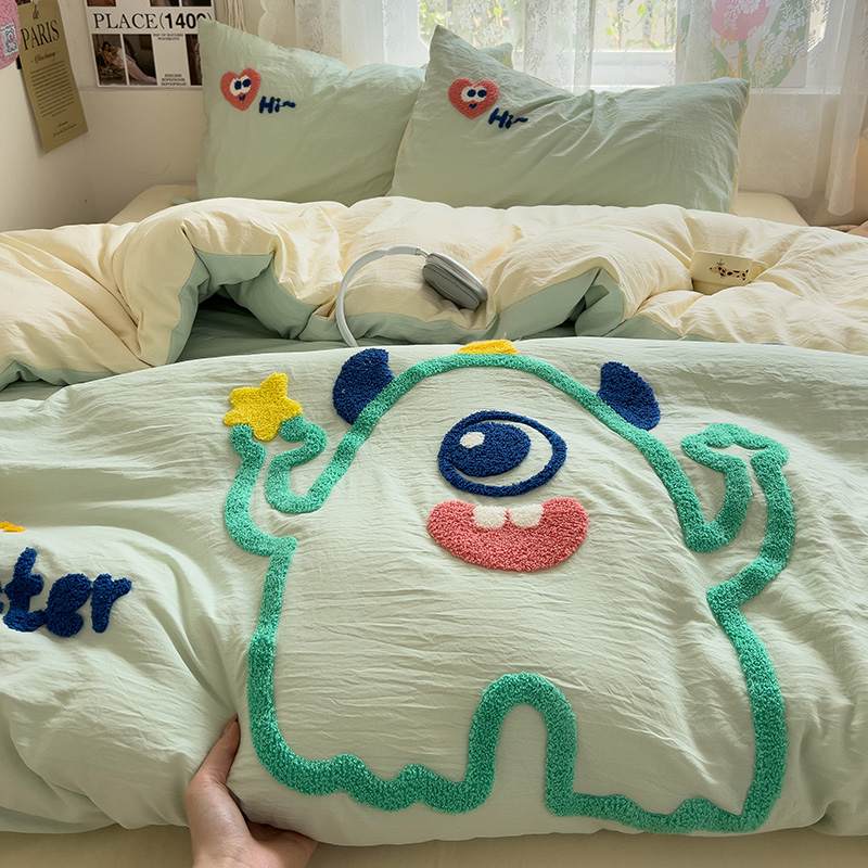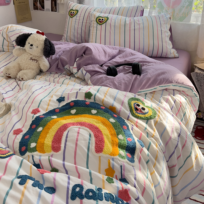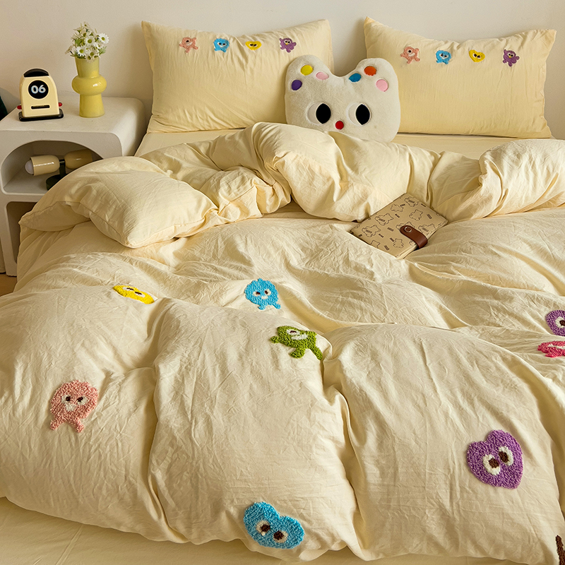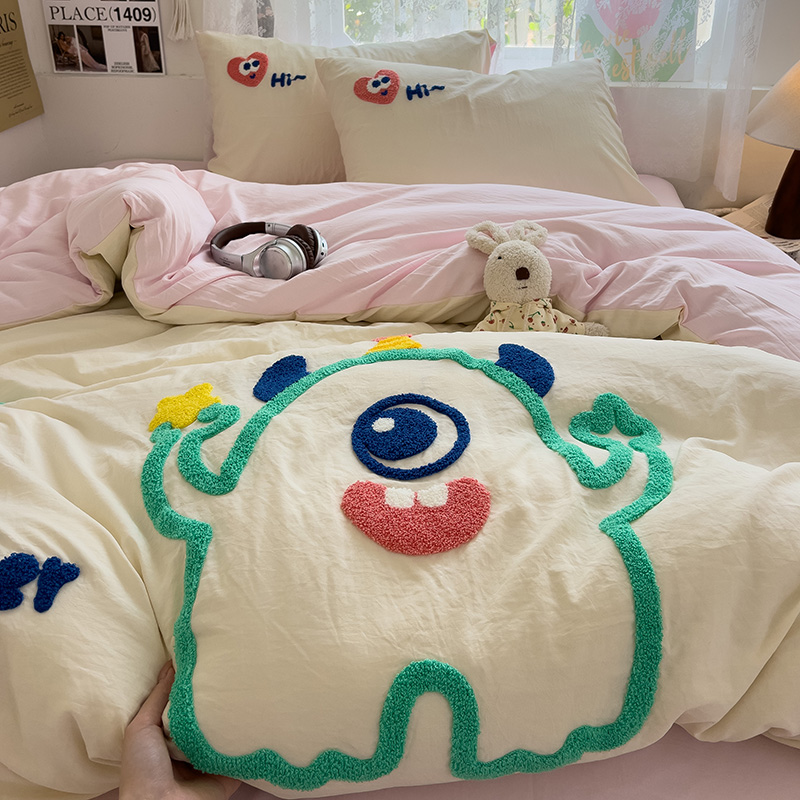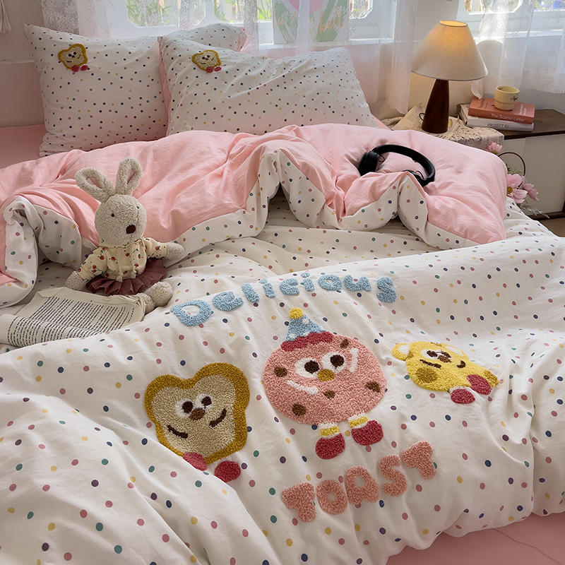 Главная страница > Полотенце с вышивкой, пододеяльник с рисунком из мультфильма, постельное белье класса А, комплект из 4 предметов из чистого хлопка, простыни из чистого хлопка, супер мягкий комплект из трех предметов для сна обнаженным